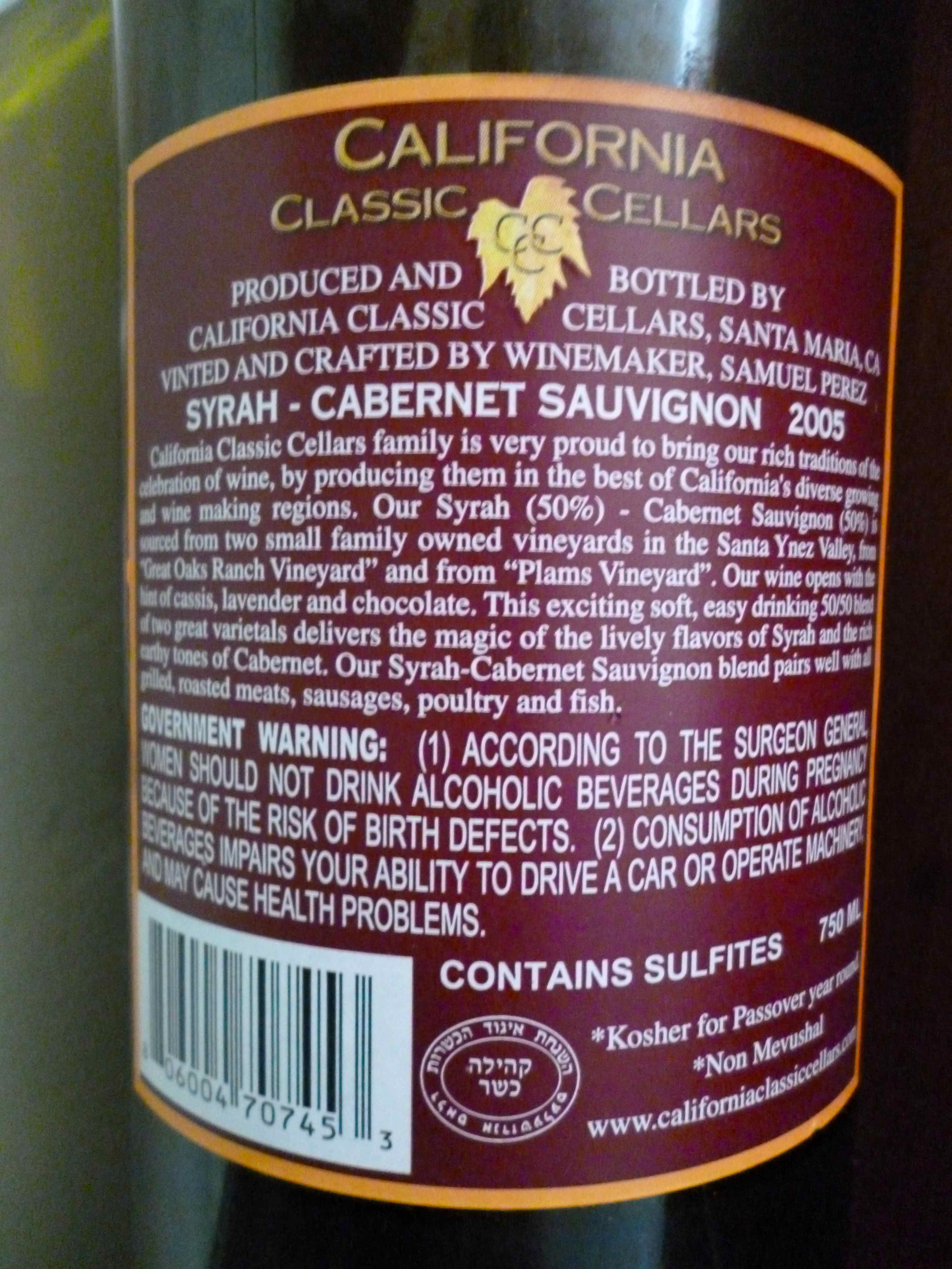 2005 California Classic Cellars Syrah:Cab Blend – back label