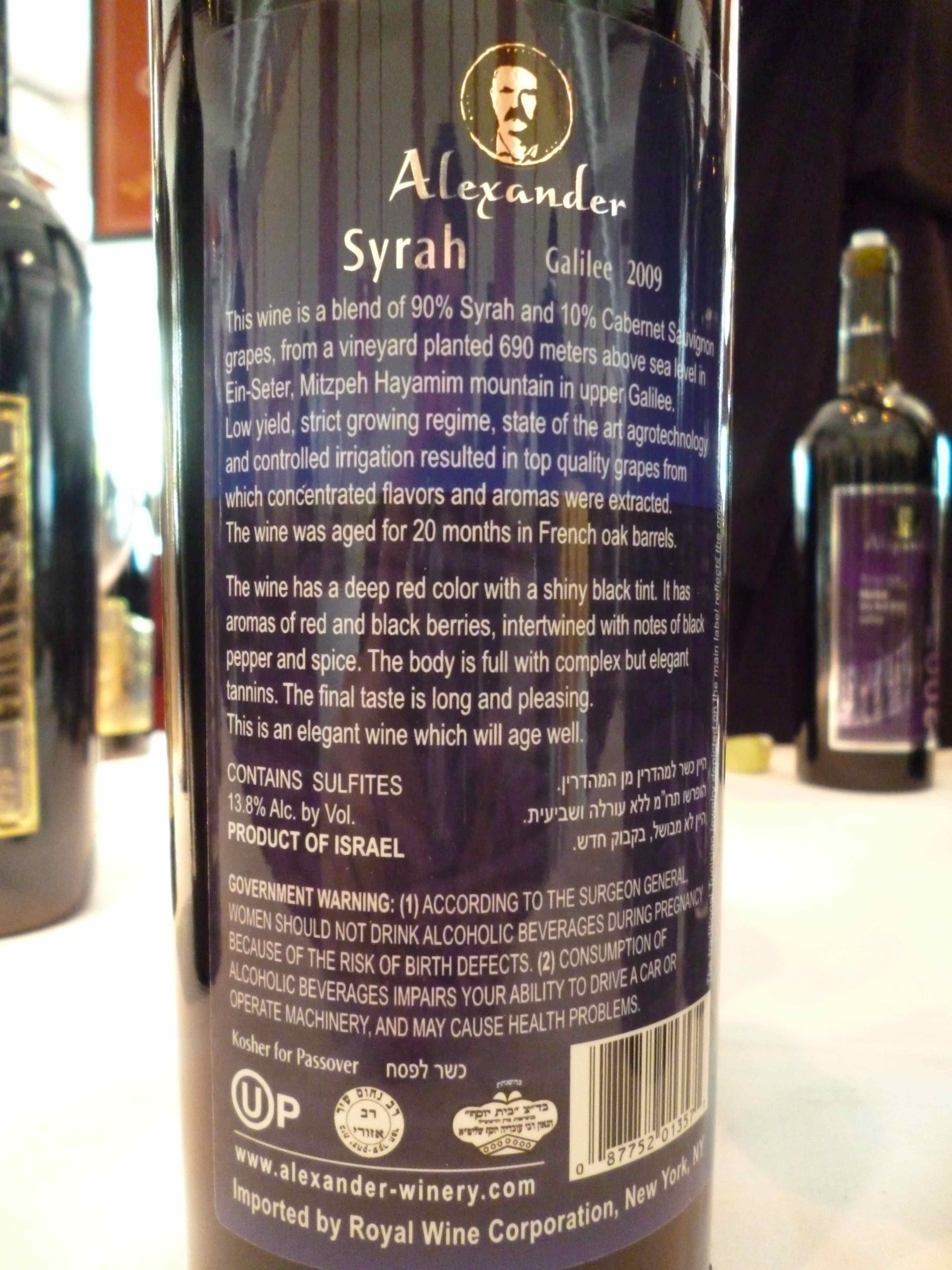 2009 Alexander Syrah, Reserve – back label_