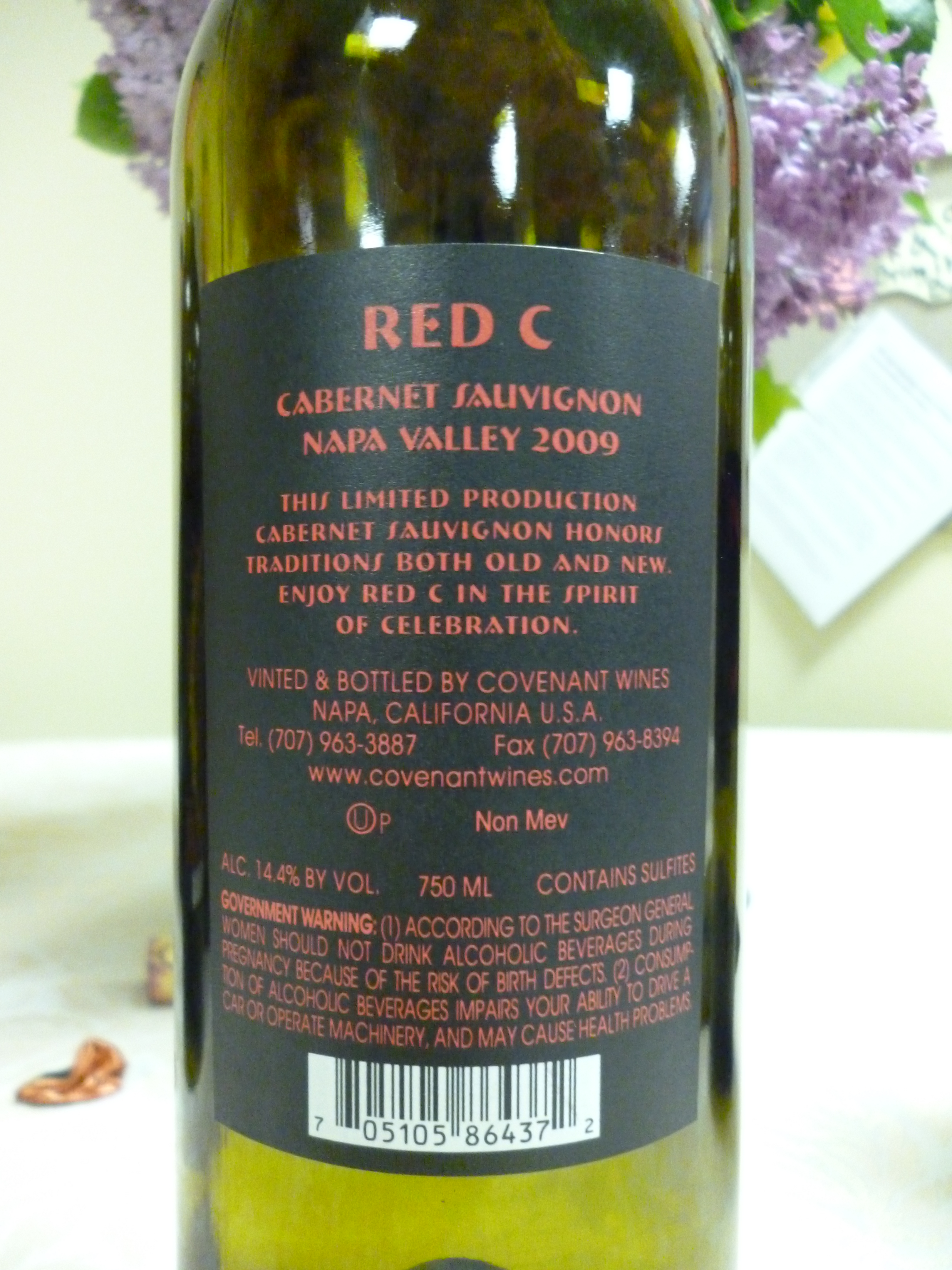2009 Covenant Red C Cabernet Sauvignon – back label