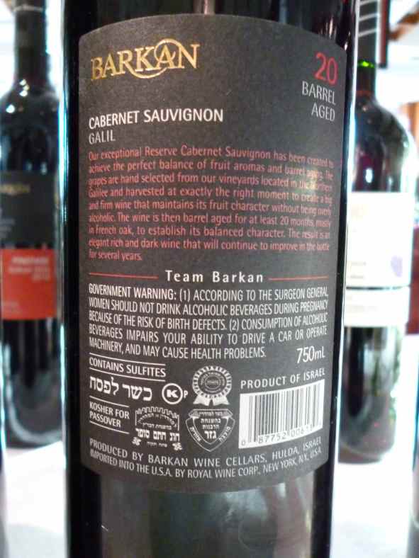 2010 Barkan Cabernet Sauvignon, Reserve – back label_