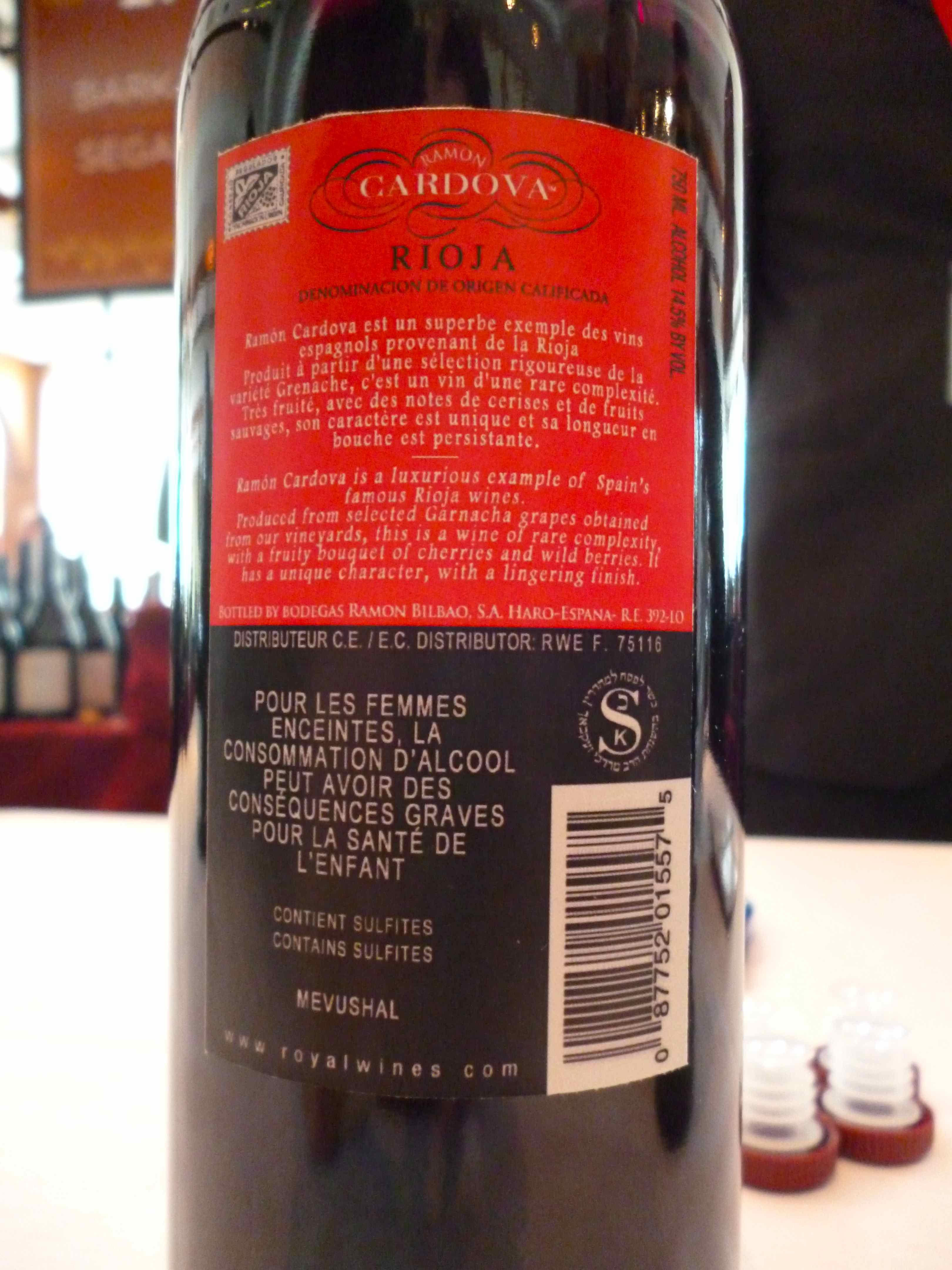 2011 Ramon Cardova, Granacha, Rioja – back label_