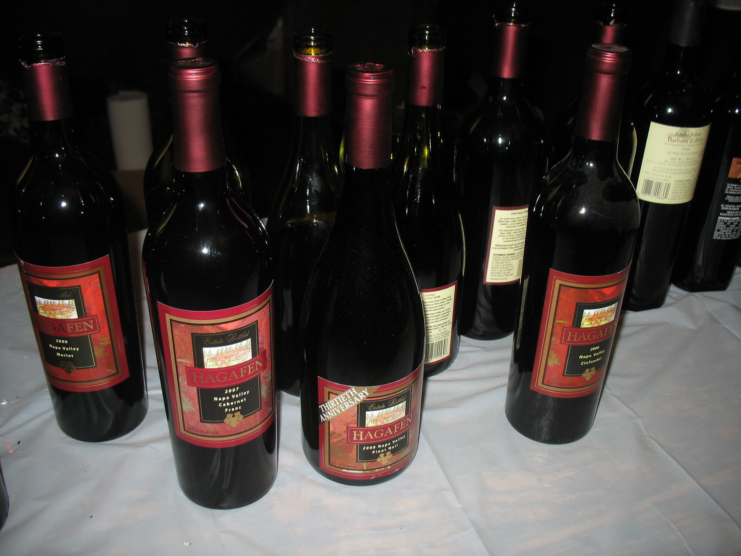 The next three were the 2004 Binyamina Choshen, 1996 Barkan Superieur Cabernet, and 2006 Barkan Superieur. We loved the 2004 Binyamina Choshen and the 2006 Barkan Superieur. The 2006 Barkan Superieur may well be the surprise of the evening to me, fat, huge, muscular, layered and crazy, while the 2004 Binyamina Choshen is crazy fat as well. The 1996 was over the hill and DOA, but still tannic and acidic. It is clear that tannin and acid will keep a wine, but a wine still has a lifespan.