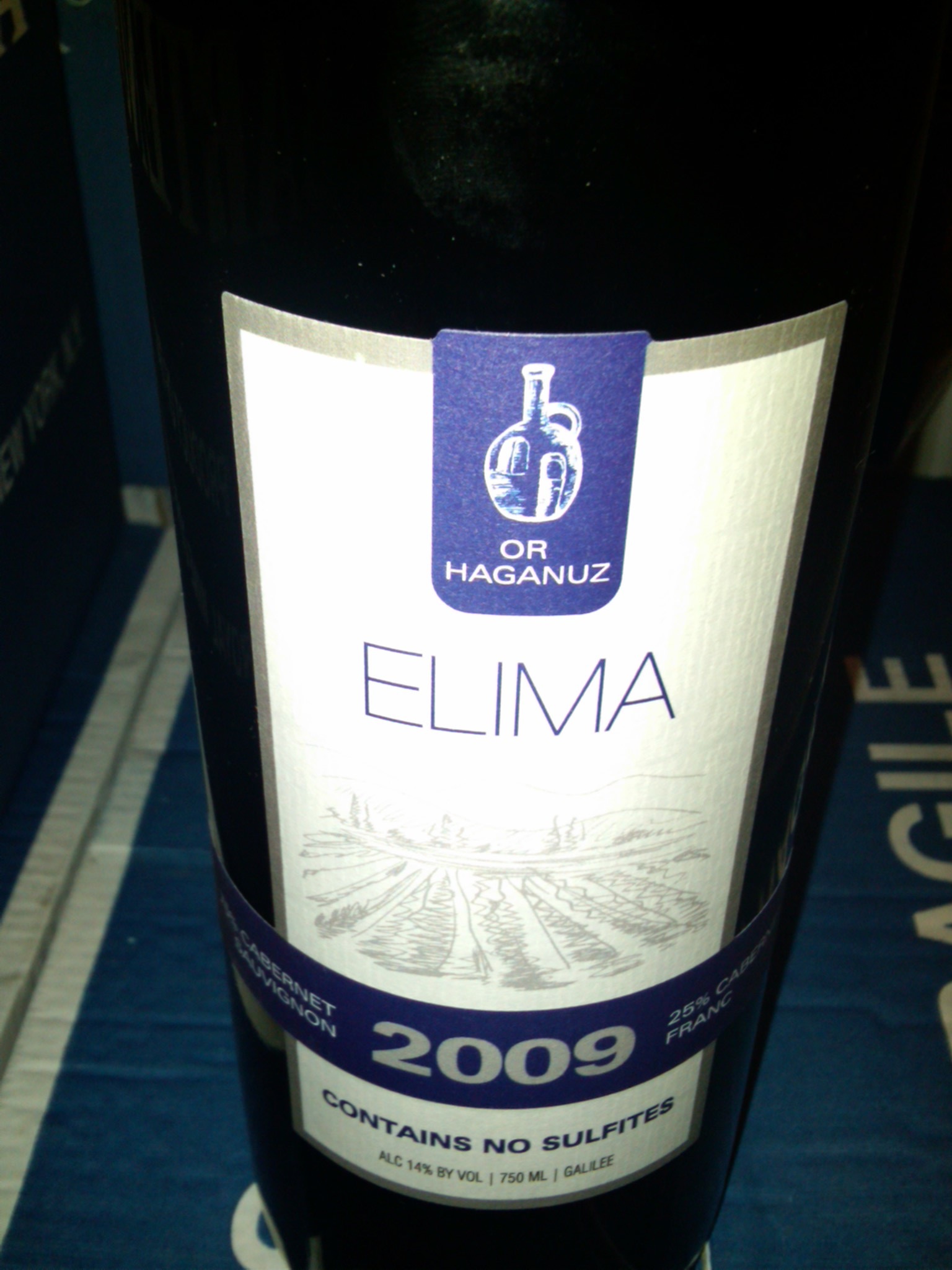 Or HaGanuz, Elima, 2009: A blend of 75% Cabernet Sauvignon and 25% Cabernet Franc, said to “contain no sulfites”. Dark garnet, with a hint of adobe brick, opens with a somewhat medicinal aroma but that blows off quickly enough to reveal a medium- to full-bodied wine with chunky tannins that give the wine a rustic note. On the nose and palate some black fruits but those overshadowed by barnyard-like aromas and flavors. Drink up. Score 78. K