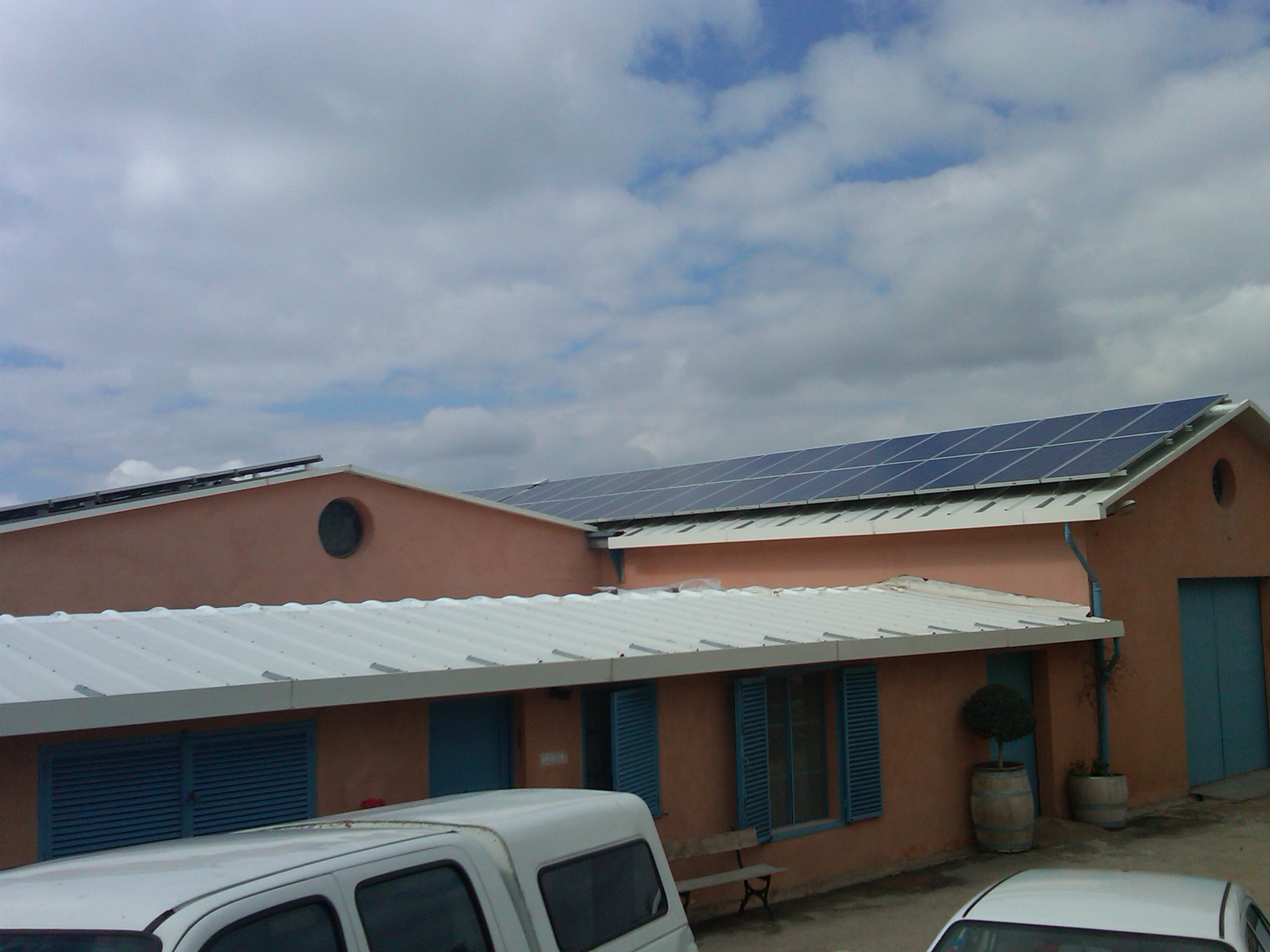 As you approach the building there are a few things that immediately grab your eye. The first is the pair of massive solar arrays that grace the two buildings low pitched roofs. We did not get a chance to see how many actual panels they have in the arrays, but there were at least 50 or so panels, if not more. Once you get past the initial shock of how green the winery is turning, the second thing that catches your eye are the pair of round windows that grace the front of the building’s gables. Each window is sumptuously adorned with the winery’s emblem; has three stars overlooking a castle, with a lion perched on top between its two turrets. This very emblem adorns every wine bottle that the winery produces, in one way or the other from the early 2000s. Prior to that, the image of Mr. Ben Zaken’s old vineyard and home graced the winery’s bottles. The three stars represent Mr. Ben Zaken’s children; Eytan Ben Zaken, Ariel Ben Zaken, Ilana Ben-Zaken. The Castle represents the crusader fortress (Castel), which was uncovered under an abandoned Arab village in the vicinity. The lion represents the emblem of the Judea tribe, upon whose Biblical assigned land, the winery is built upon.