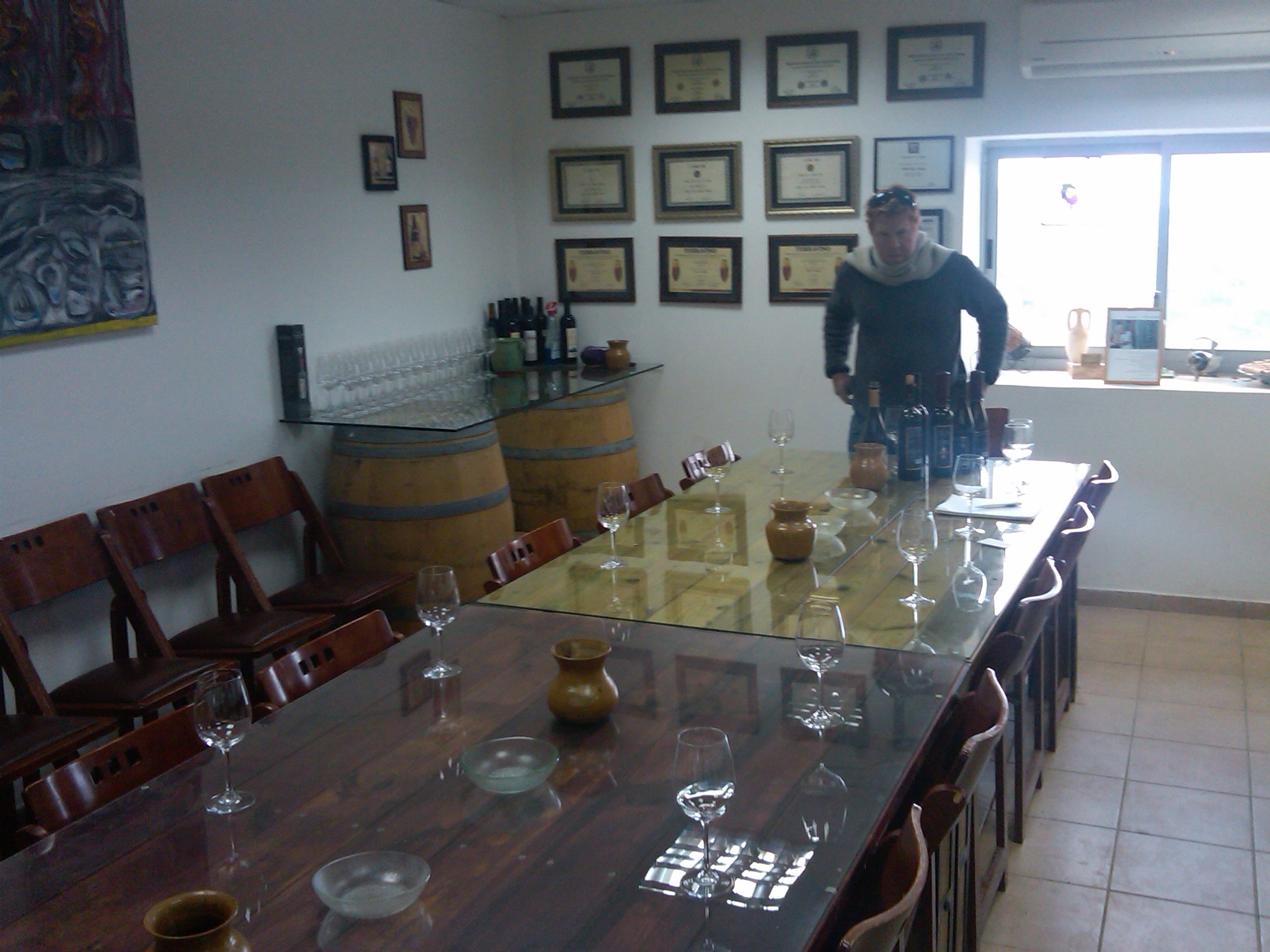 The wines we tasted we partially from the 2008 vintage, the shmitta year that will not see the light of day in America, and some from before and after the 2008 vintage. The 2007 and 2009 wines have and will soon be available in America, while, as stated before, the 2008 vintages are available on in Israel, as Royal Wines (the US distributor for Tzuba) does not import Shmitta wines. We have spoken about shmitta and other such kosher issues in my Kosher 101 blog posting. In addition to the new porch, Tzuba also built a new wine bar and point of sales, down near the porch, where Paul says, they sell some 30% of the wine that they produce. Twenty percent is shipped abroad, and the other 50% is sold in Israel.