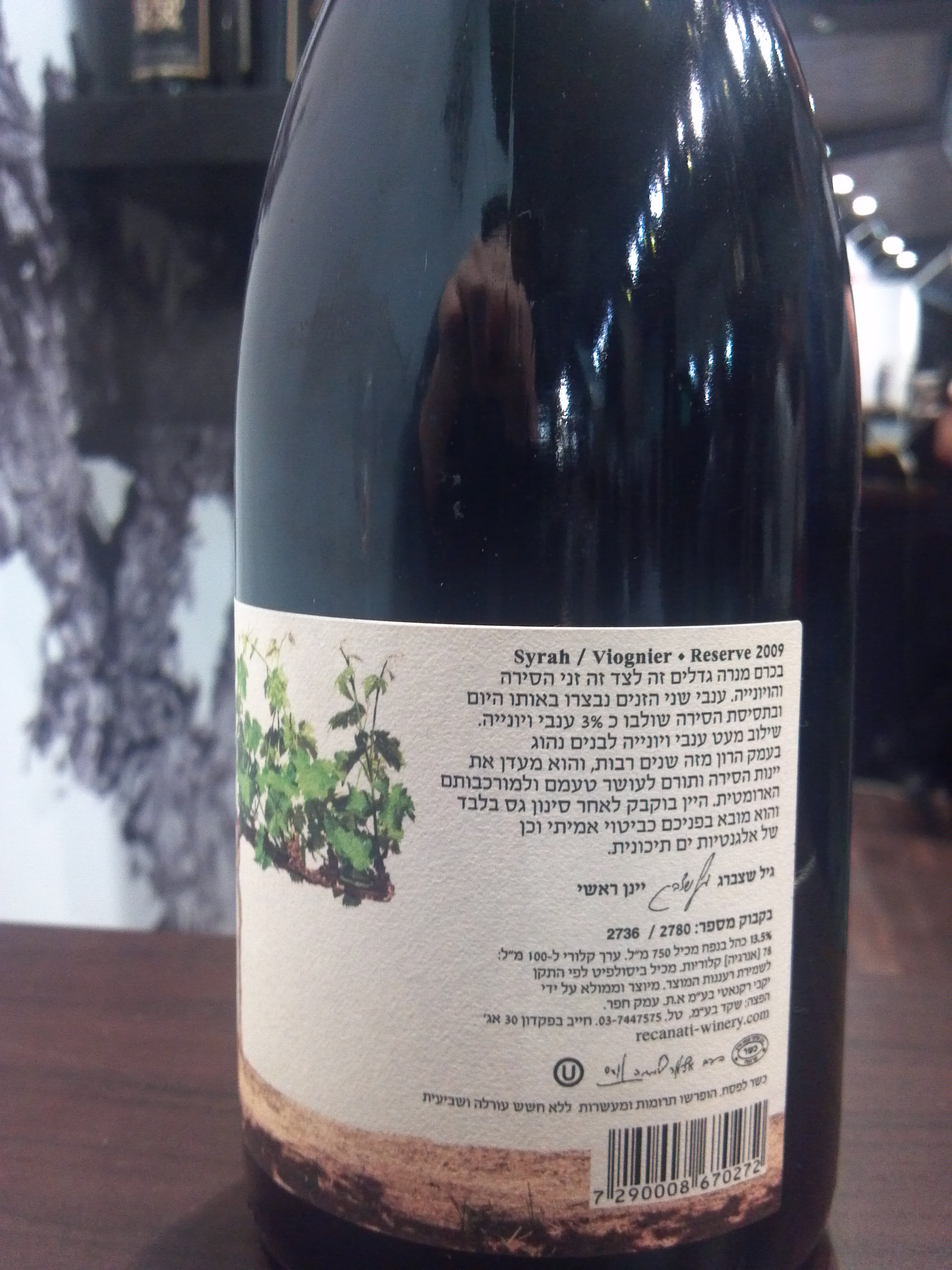 2009 Recanati Syrah and Viongier, Reserve – back label