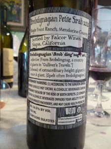 2010 Brobdingnagian Petite Sirah (Mendocino County) – Score: A-
