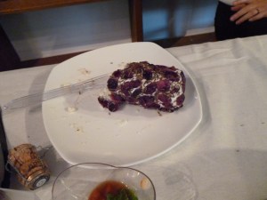 The Grenache went perfectly with a few plates of lovely cheeses, including some spicy(jalapeno spiked?) Monterrey jack, some Gouda cheese, some olive oil covered cheese, which I missed tasting, and a Cranberry and Cumin Chevre Roll – which was unique and great with the Grenache.