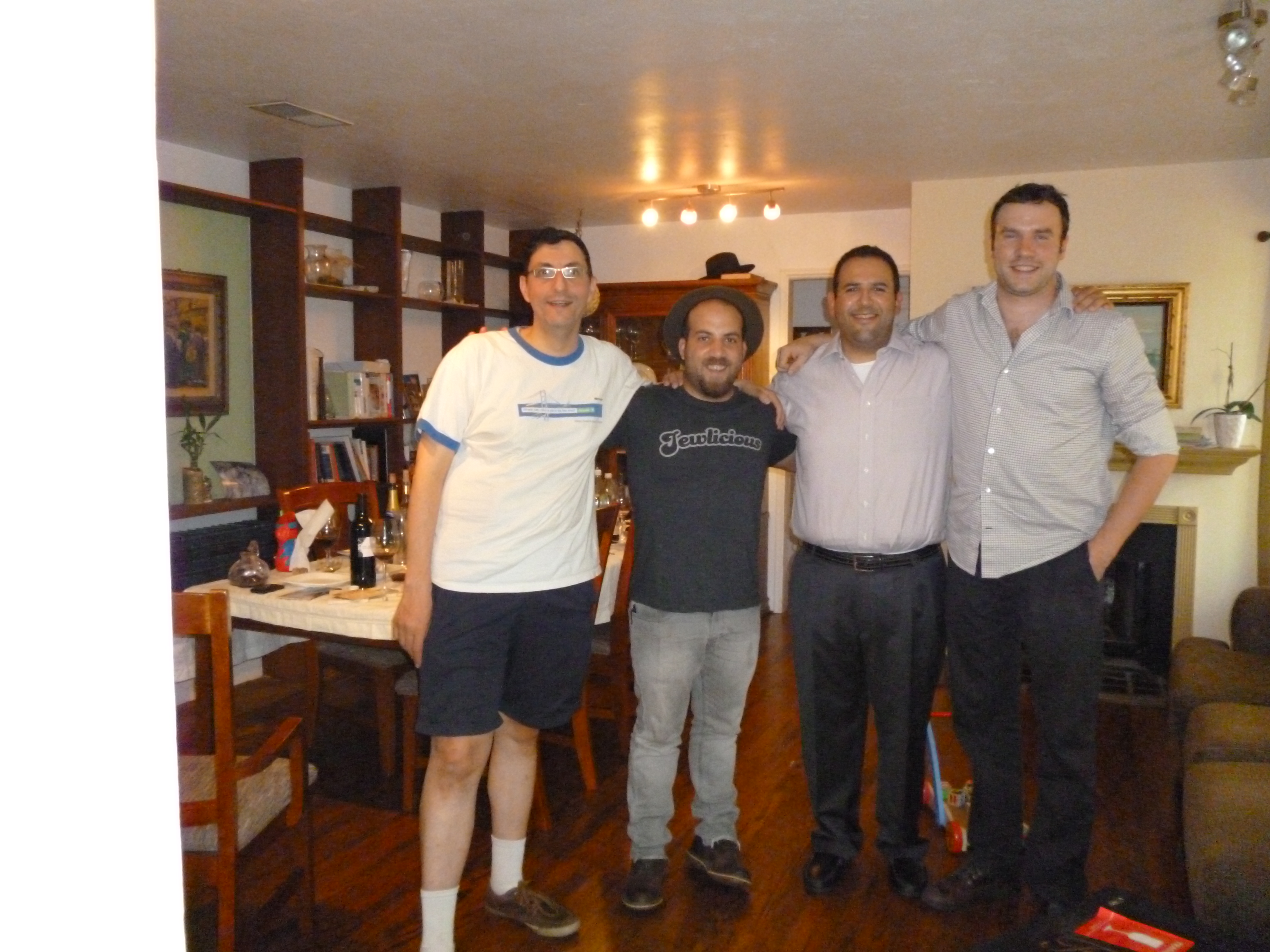 So there you have it, we are faced with four glasses of wine, with the knowledge that they were all Merlot, and with our opinions officially noted down in indelible ink for posterity. I must admit that I always love blind tastings as they of course remove any bias but they also put you and leave you on edge until the official unveiling, where your kimono is opened wide and your soul is laid bare for all to see. Again, we all loved the first wine, the second was quite nice, the third was average, and the last was close to unbearable. So there you had it and now came the time of reckoning. In the end, we all liked the new 2008 Four Gates Merlot, M.S.C., well-balanced, tons of oak (very UnBenyo like), and deeply black in nature with good ribbons of red and earth. The second wine turned out to be the insanely acclaimed 2005 Domaine Roses Camille, a wine that was rated 95 and called one of the best ever kosher cuvees out of Bordeaux by the late Daniel Rogov! Rogov had scored kosher wines above 95, those being for a few Yarden wines, but this was his highest score for anything outside of Israel and US (yeah the Hagafen Melange scored a 95 as well). It was also a wine that was heavily acclaimed by the Wine Spectator and Decanter. The third wine was its younger brother, the 2006 Domaine Roses Camille, which was scored a 93 by Daniel Rogov, and also scored well with the Wine Spectator. The fourth wine was the 2004 Yarden Ortal Merlot, a wine we liked in our 2011 roundup, however, at this tasting the wine had turned brown, showing quite poorly, making me think the bottle (which Andrew got from the local Yarden distributor), was not handled with care before getting to Andrew.