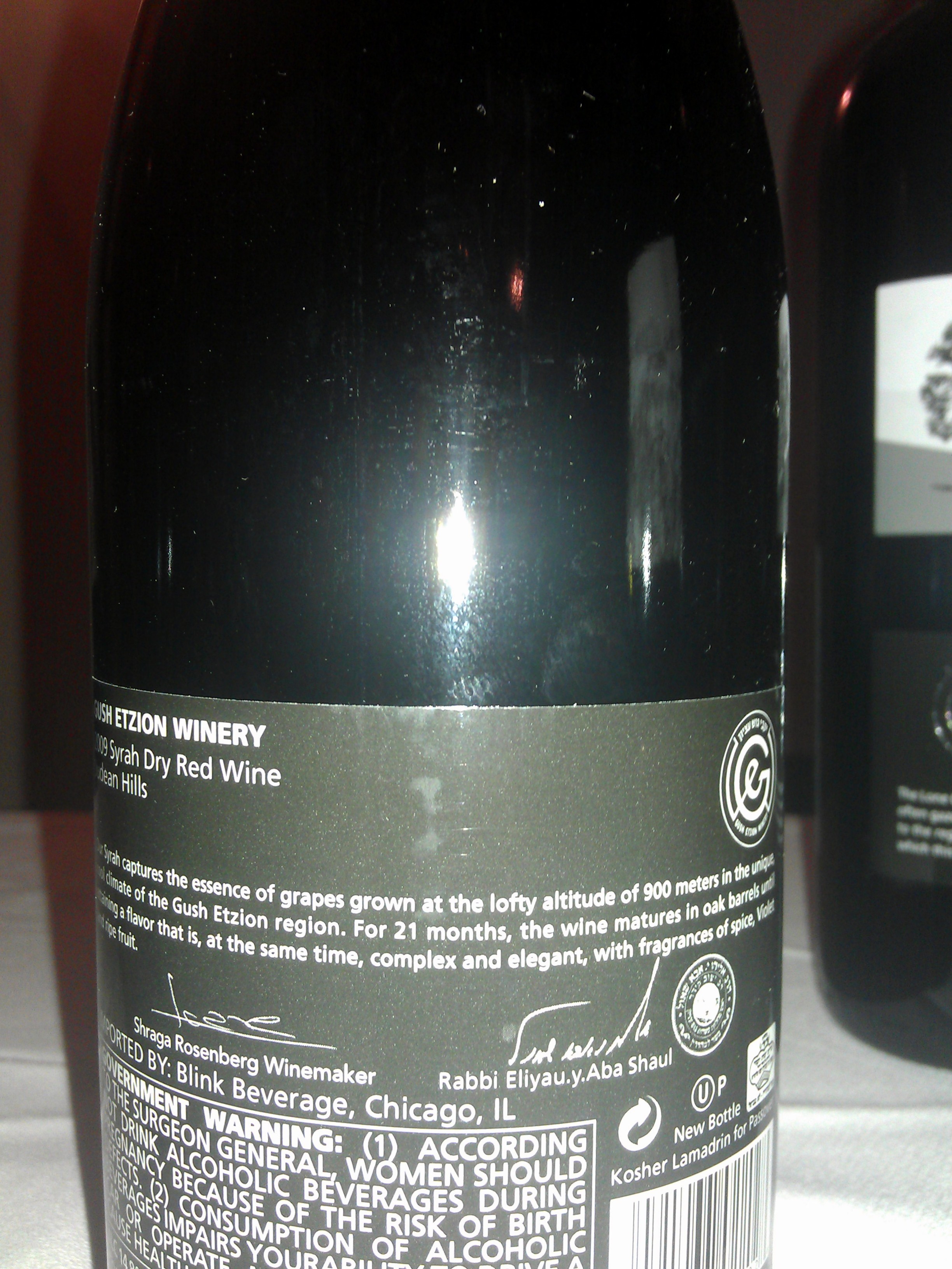 2009 Gush Etzion Syrah, Lone Oak, Reserve – back label