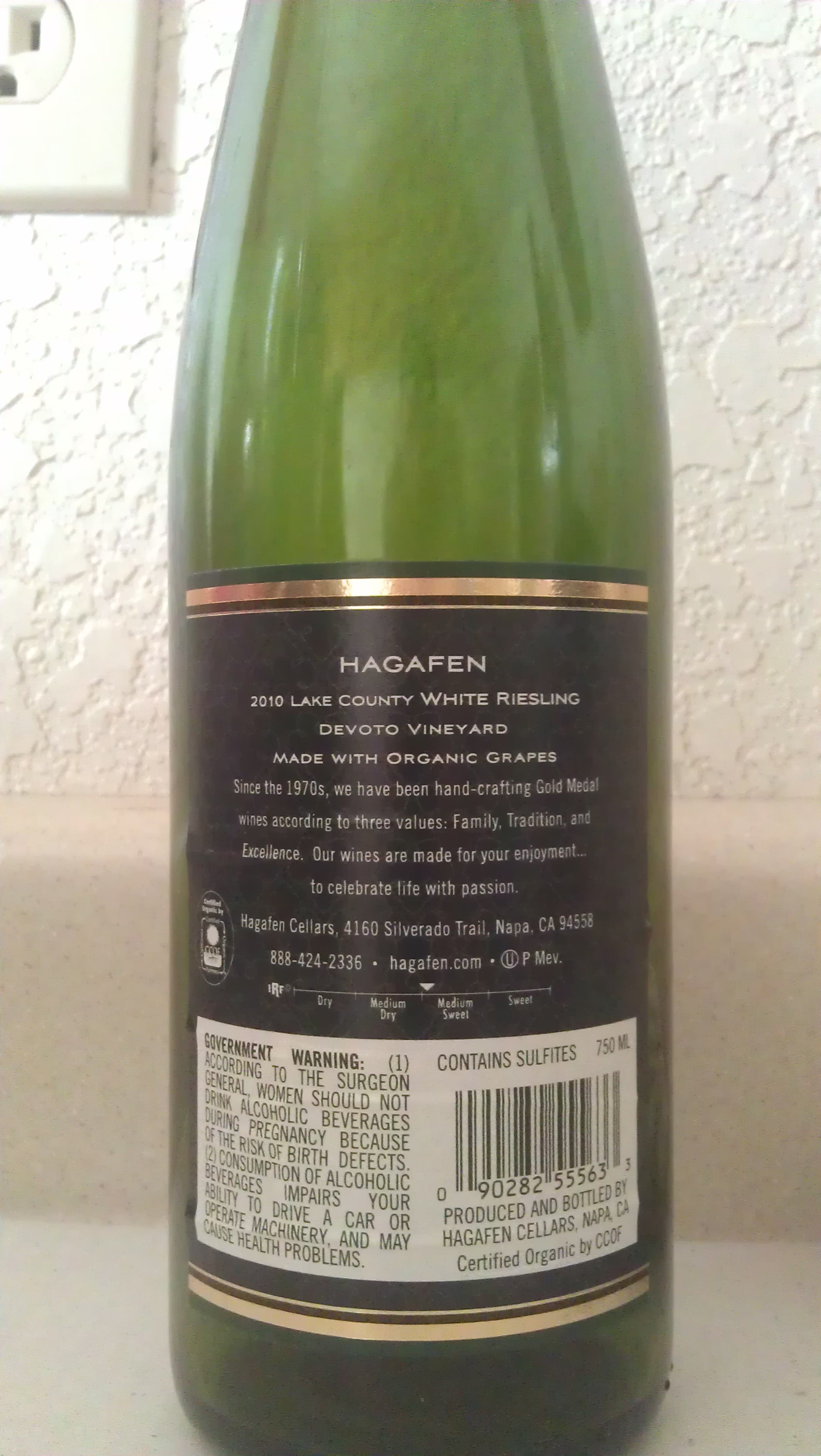 2010 Hagafen White Riesling, Devoto Vineyard – back label