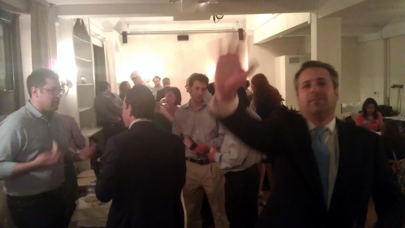 Crowd at the 2012 KWS new wine tasting (Shai Ghermezian waving)