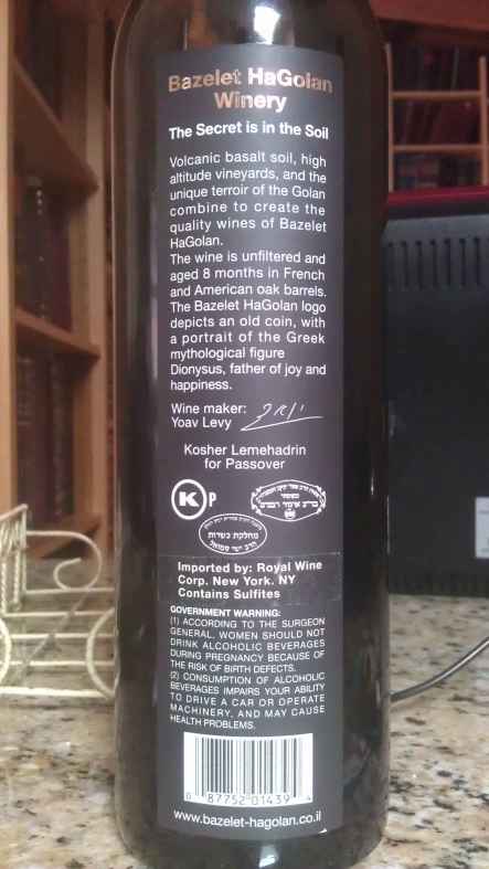 2010 Bazelet HaGolan Cabernet Sauvignon – back label