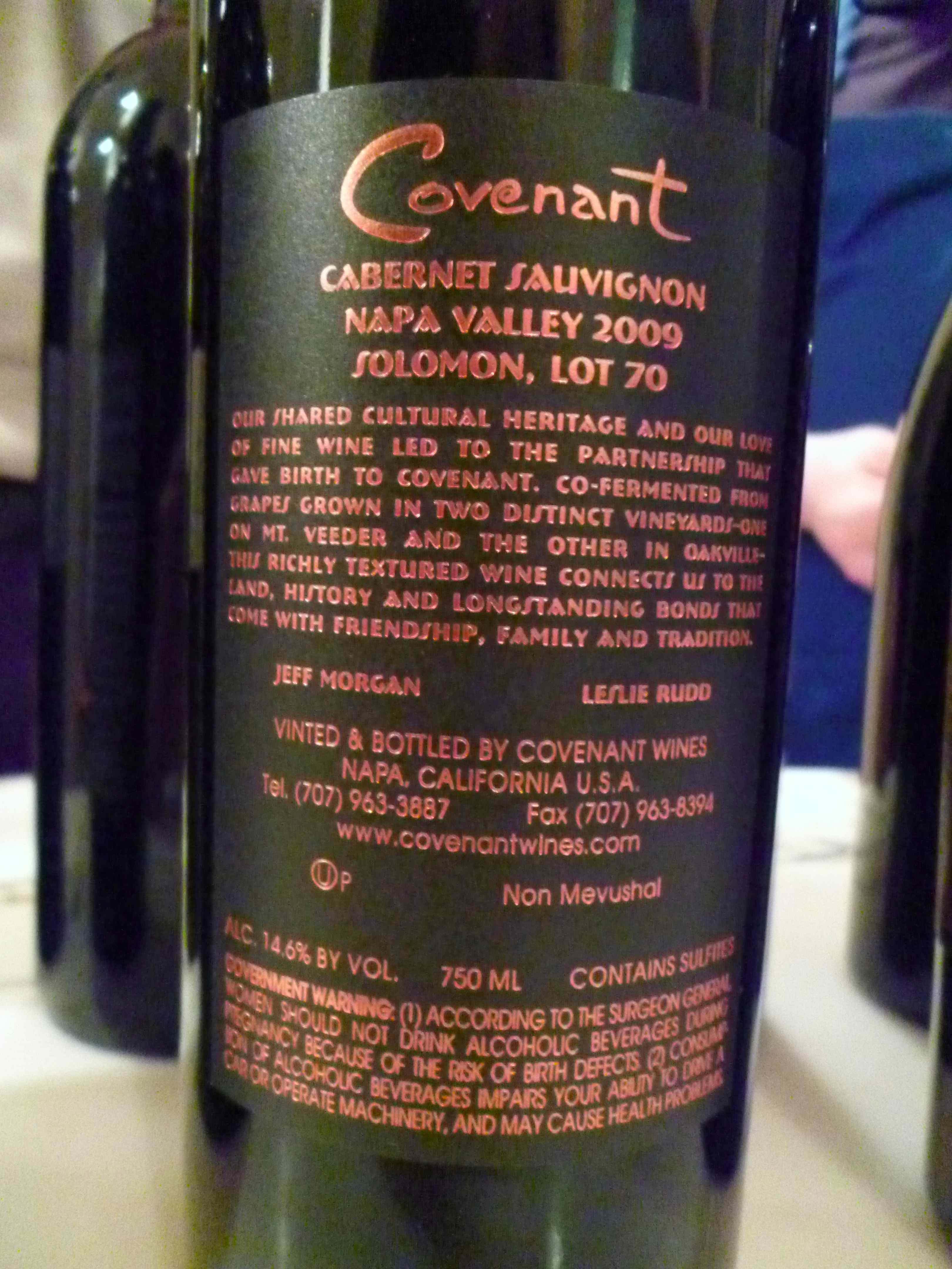 2009 Covenant Cabernet Sauvignon, Solomon Lot 70 – back label