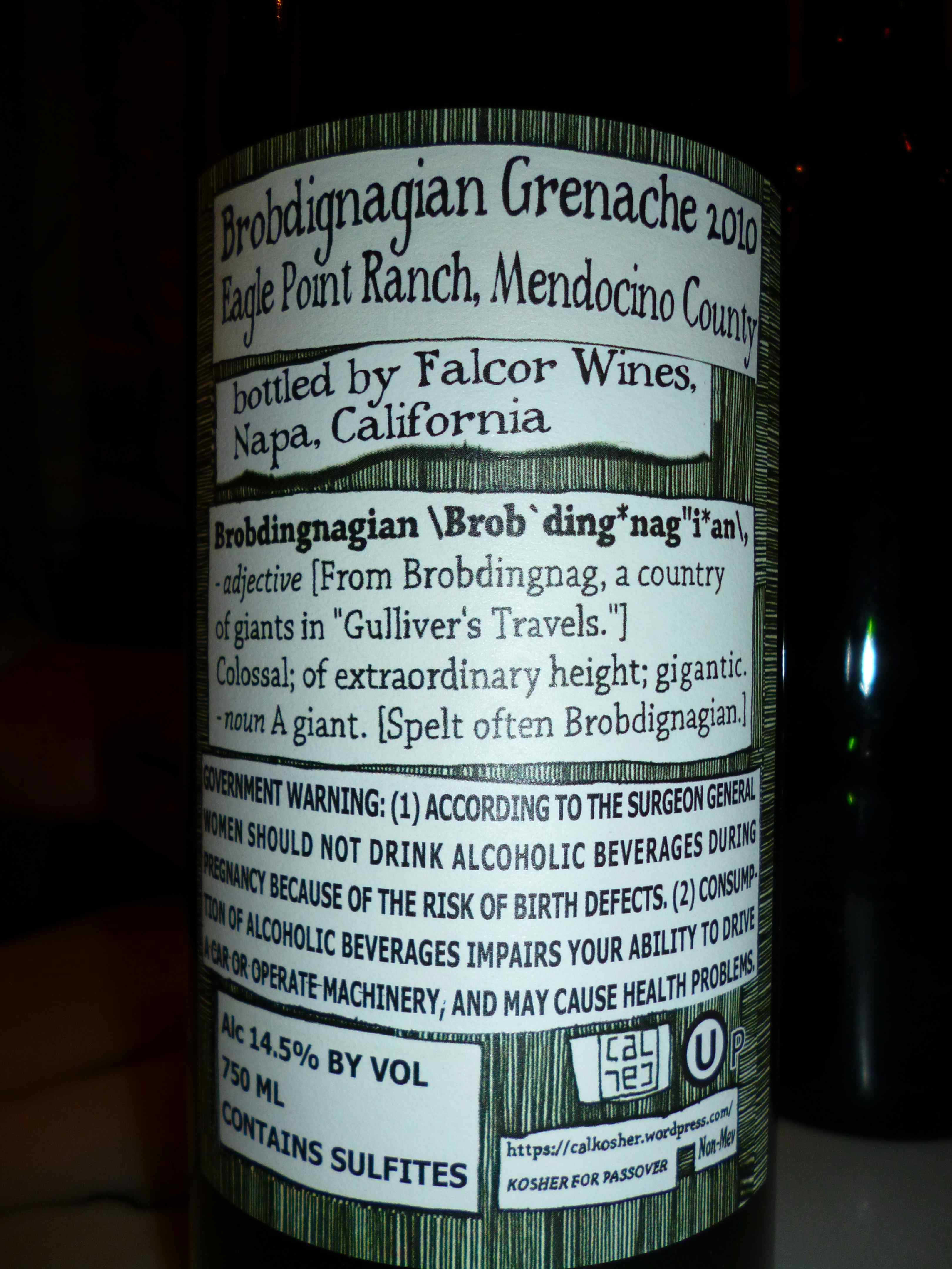 2010 Brobdignagian Grenache – back label