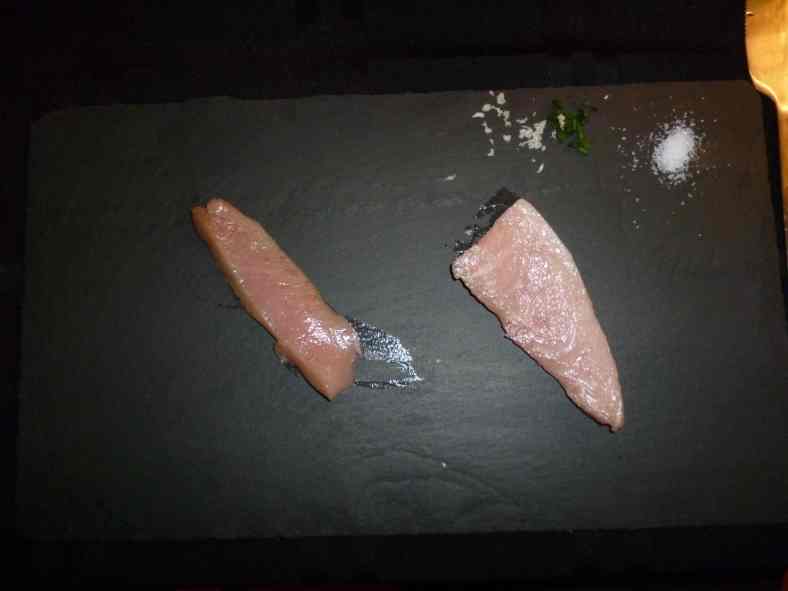 toro two ways, belly toro and head toro, salt, chive, and horseradish