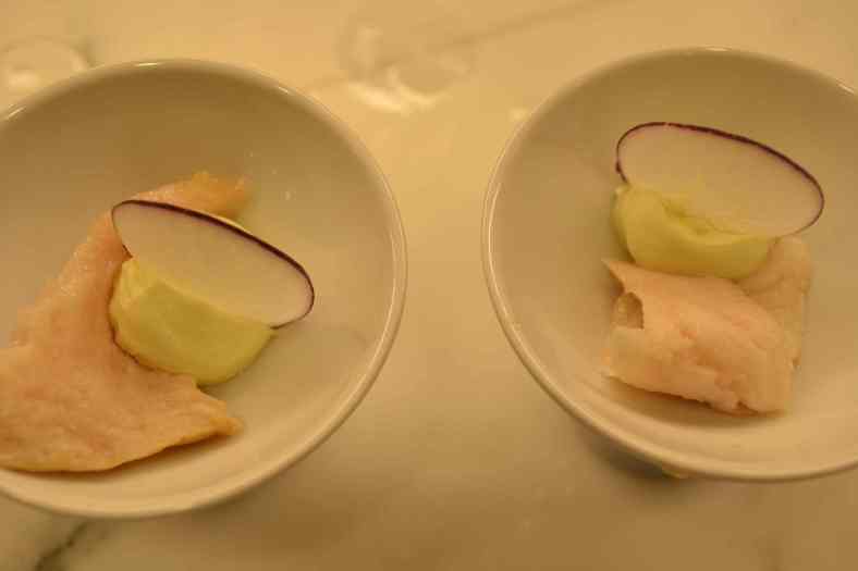 Veal lardo, back fat cured and cooked, black truffle mousse, shaved radish