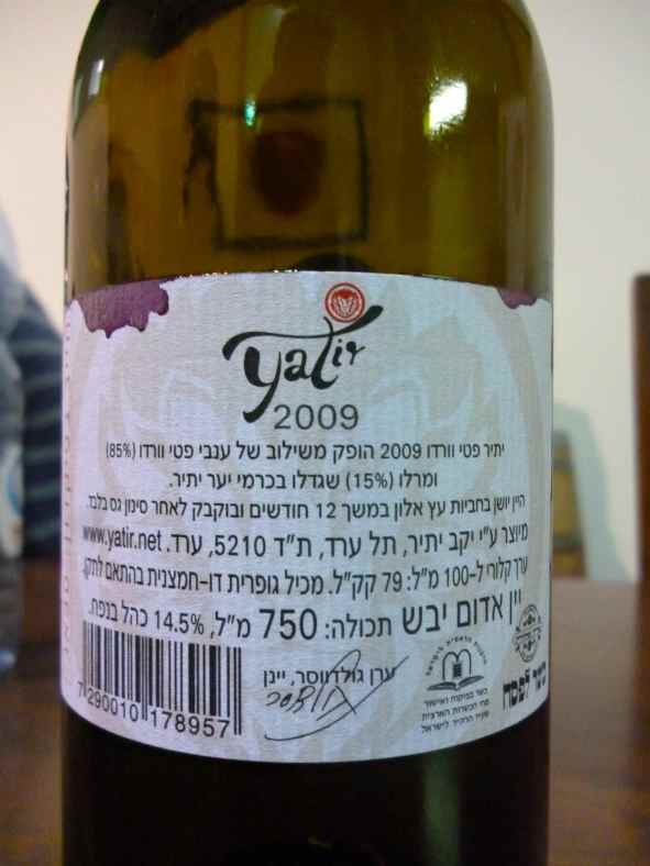 2009 Yatir Petite Verdot – back label-small