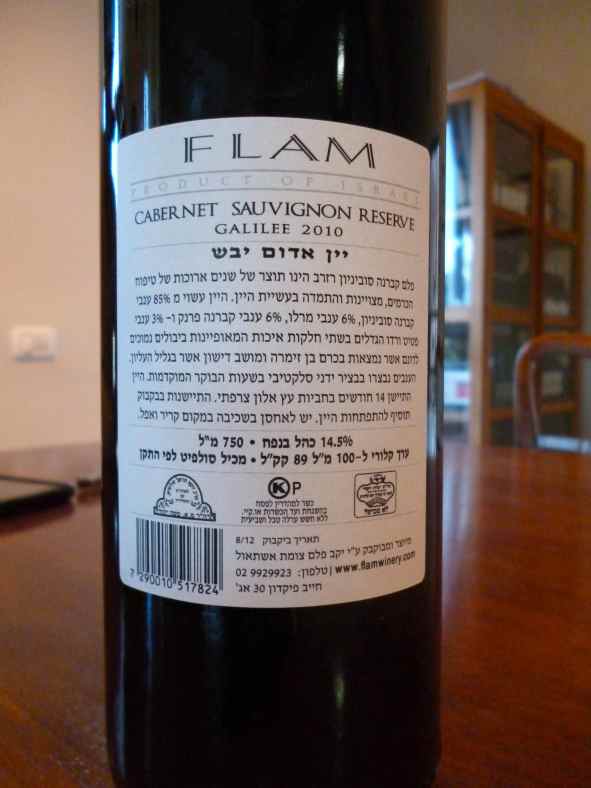 2010 Flam Cabernet Sauvignon, Reserve – back label-small