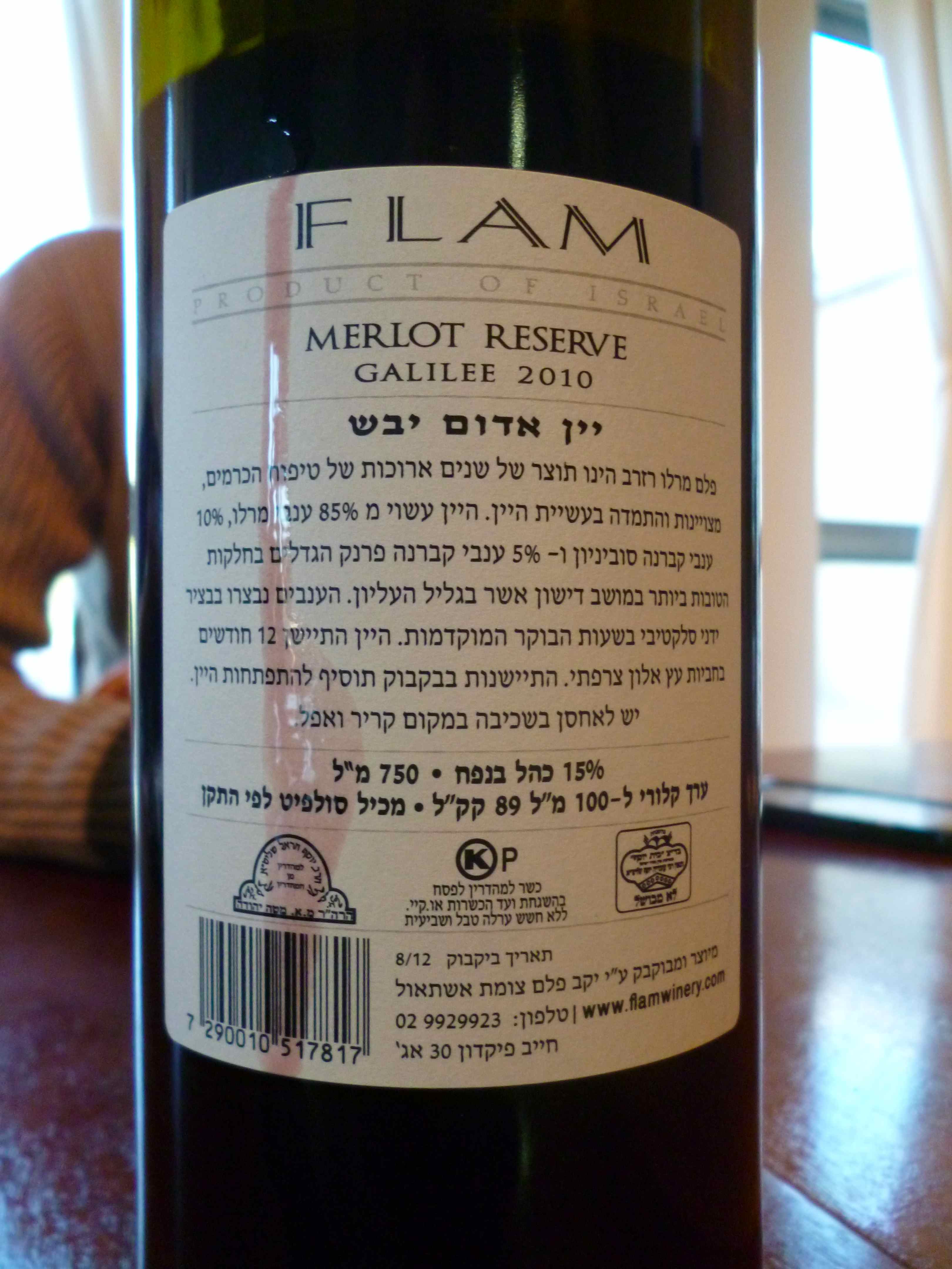 2010 Flam Merlot, Reserve – back label-small