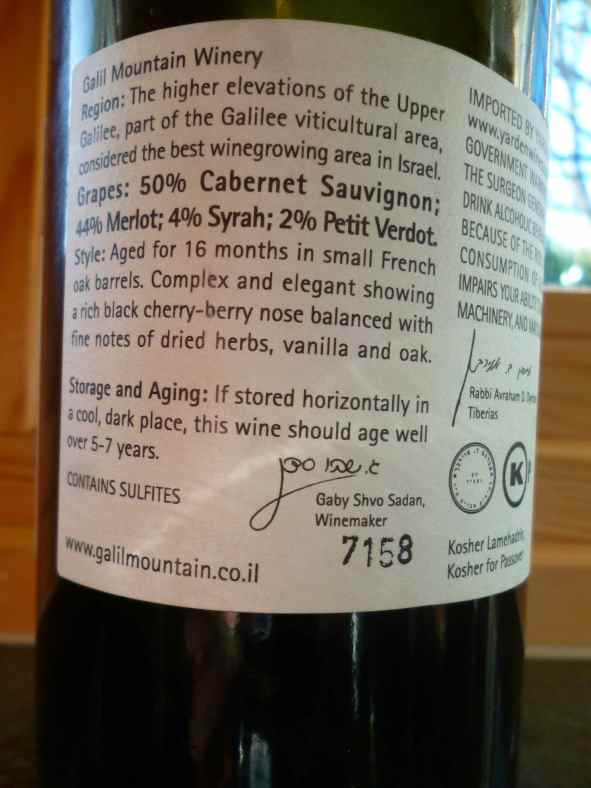 2005 Galil Mountain Winery Yiron – back label-small