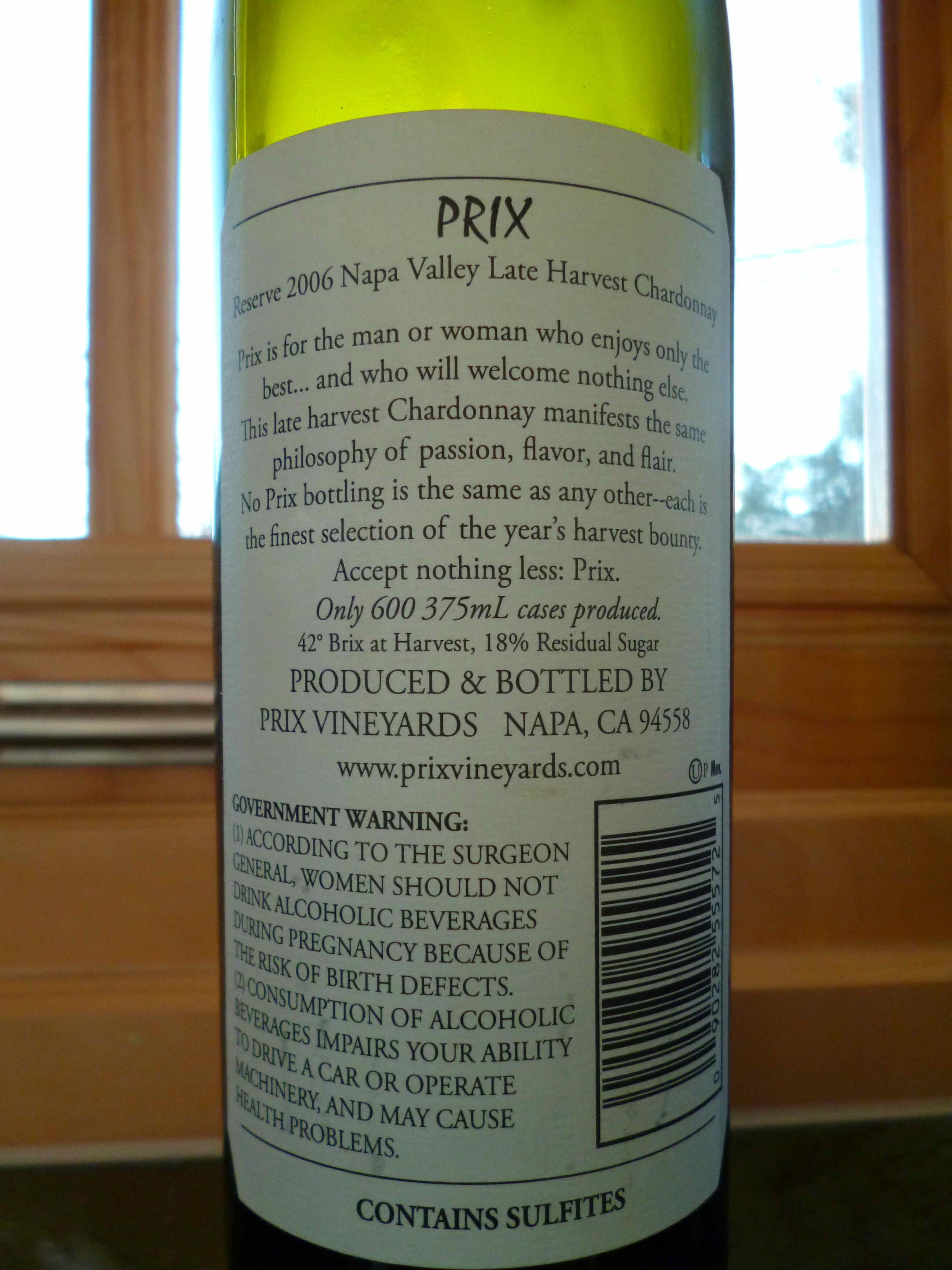 2006 Hagafen Late Harvest Chardonnay, Prix, Reserve – back label-small