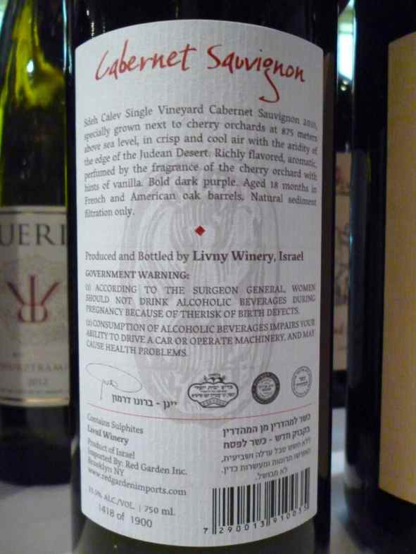 2010 Livni Cabernet Sauvignon, Sdeh Caleb, Single Vineyard – back label-
