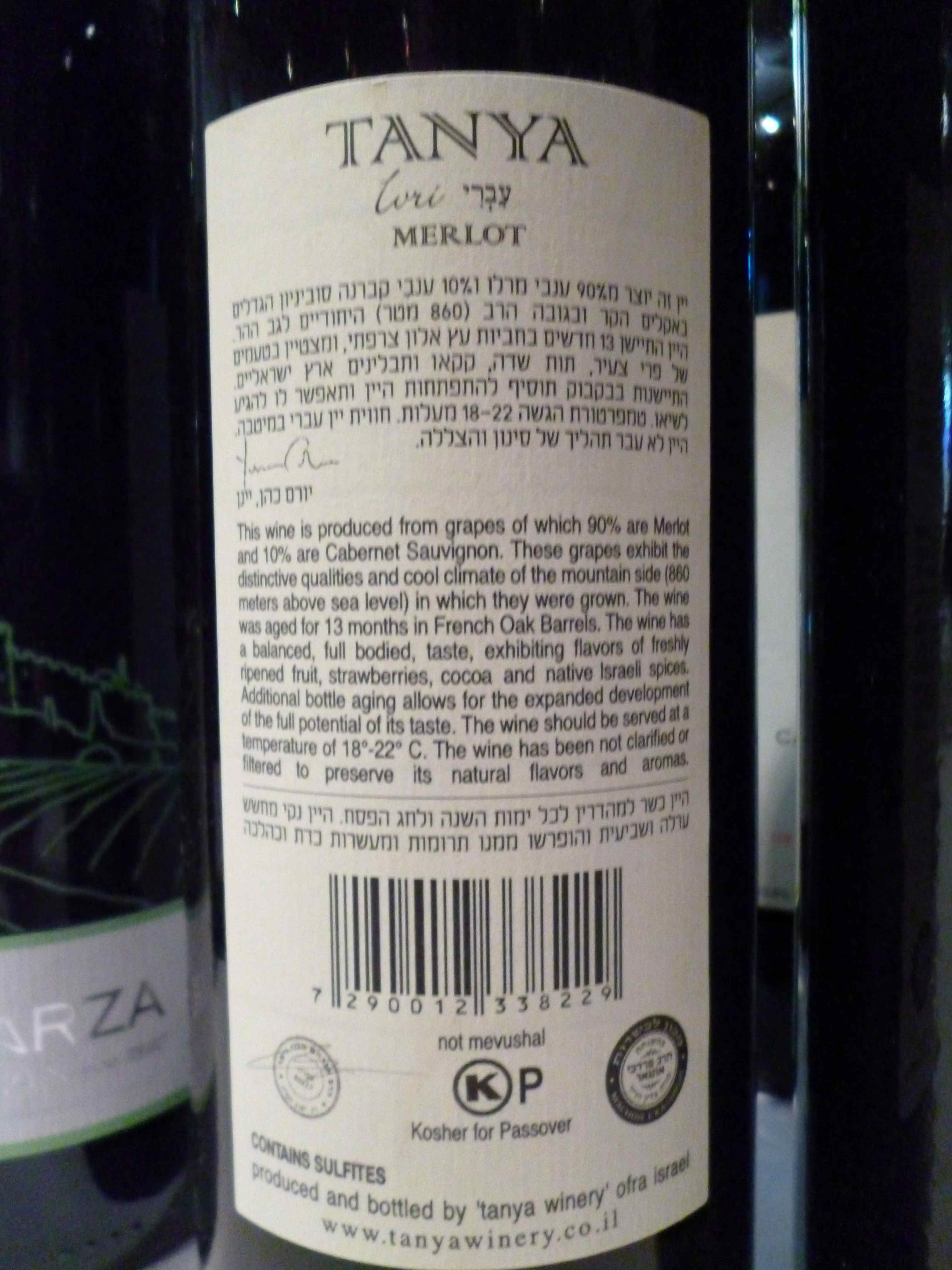 2010 Tanya Merlot, Ivri, Reserve – back label-