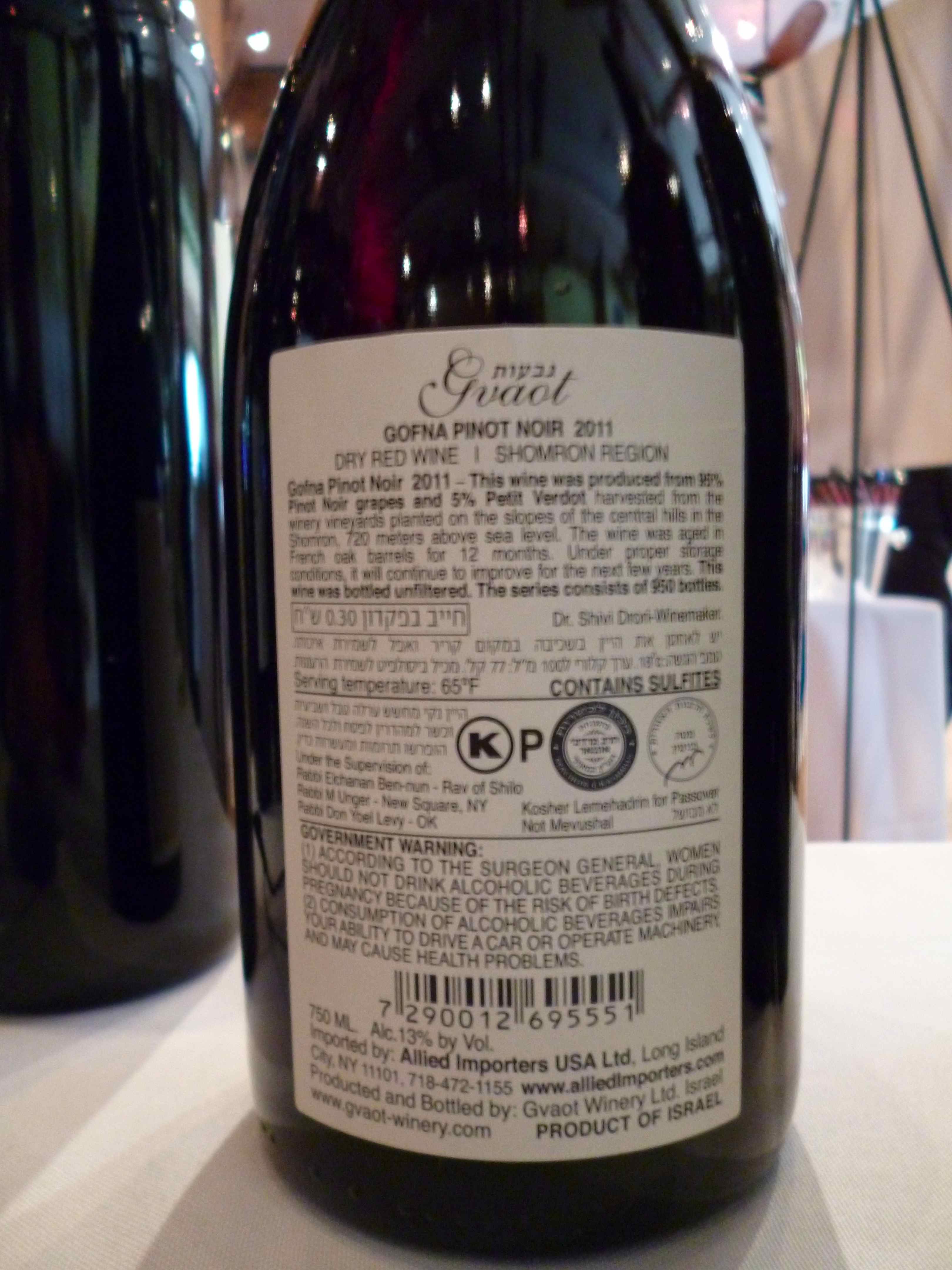 2011 Gvaot Pinot Noir, Gofna – back label-