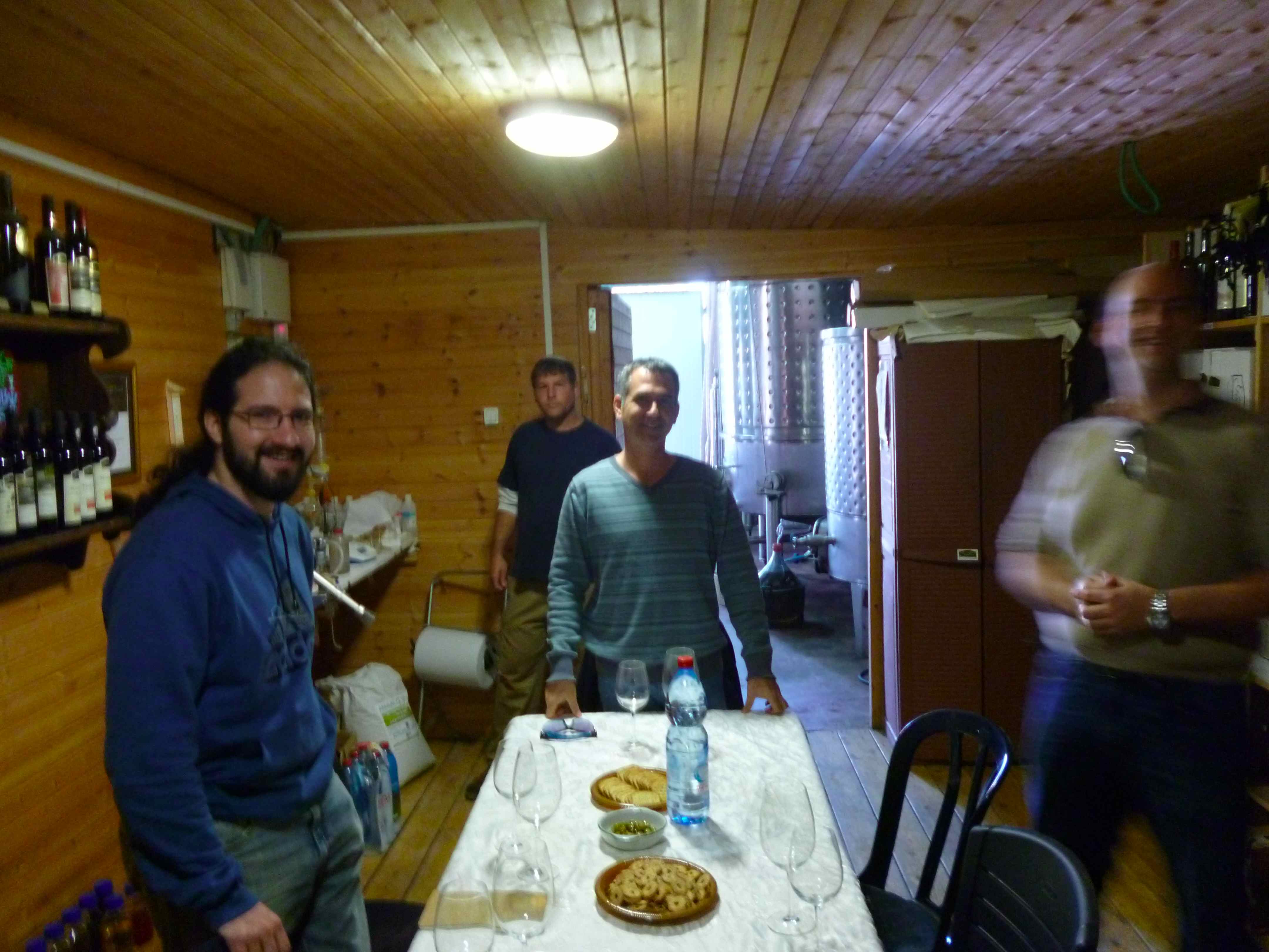 Gvaot Winery tasting room, with Doron, Shivi, Gabriel, and the winery hand