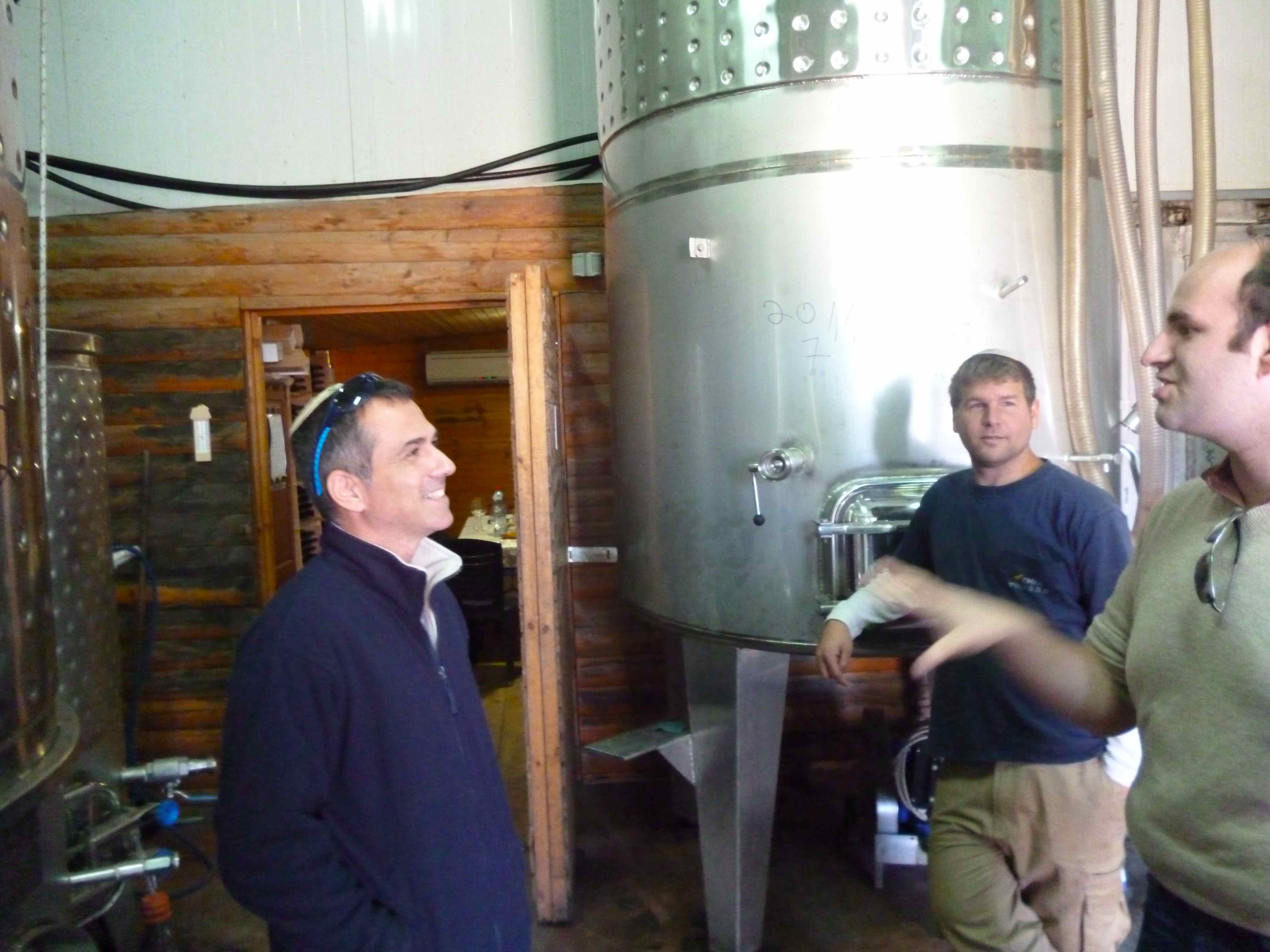 Gvaot Winery with Shivi Drori, Gabriel Geller, and winery hand in winery 2