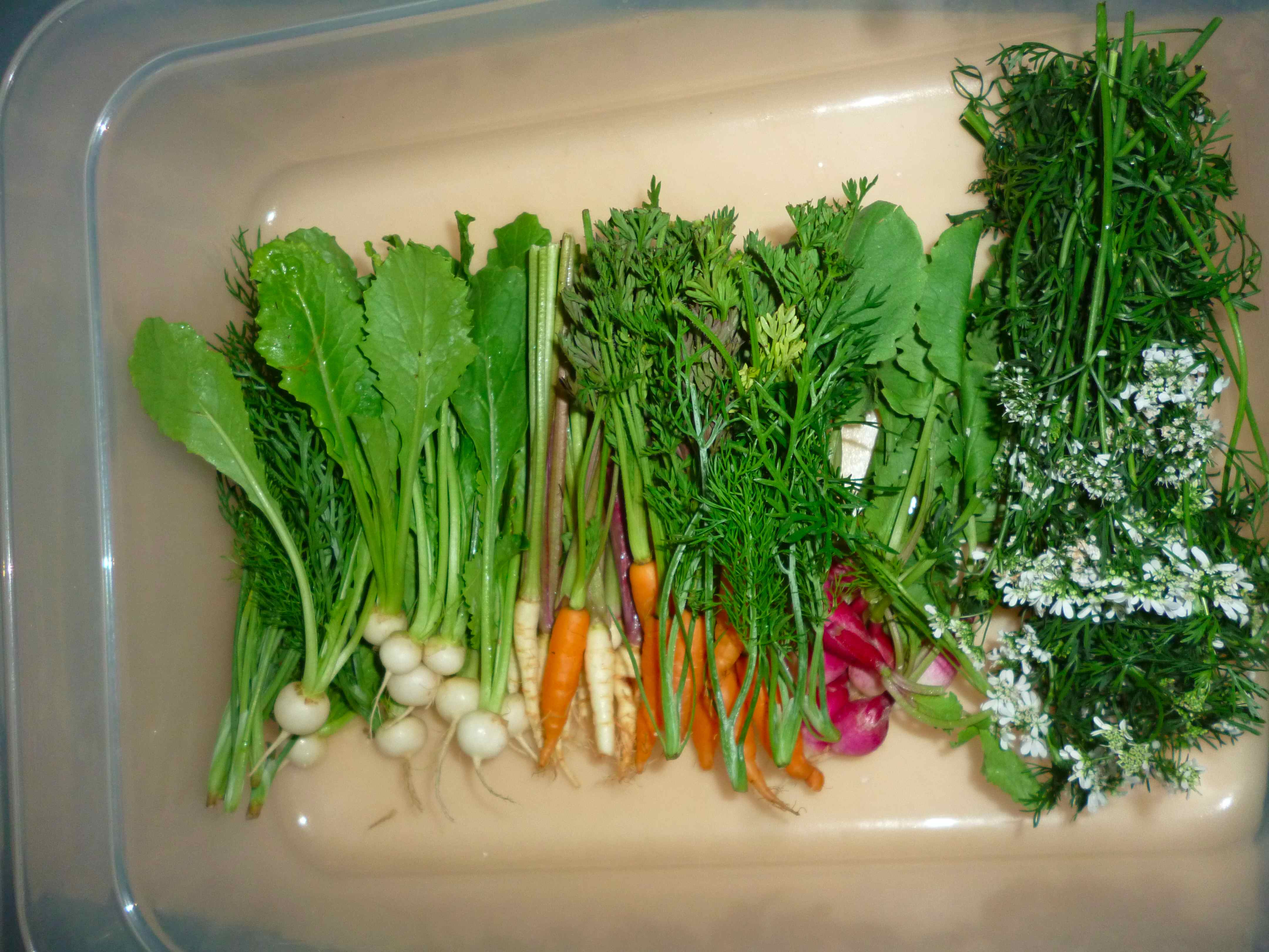 This may be highly biased, as the man was in my house for an entire day, but it gave me a very clear view into the world of Bernstein and his style with food. To him the garnish that is on all plates, is not there just to look at, which it is, but it is there to add a balance of flavors and texture. A great example is the great care he takes to find only the very best and lovely looking garnishes for the dishes, as seen here on the left. That is a container of beautiful micros greens, flowers, small carrots, and onions. Truly lovely to enjoy and to take in visually!