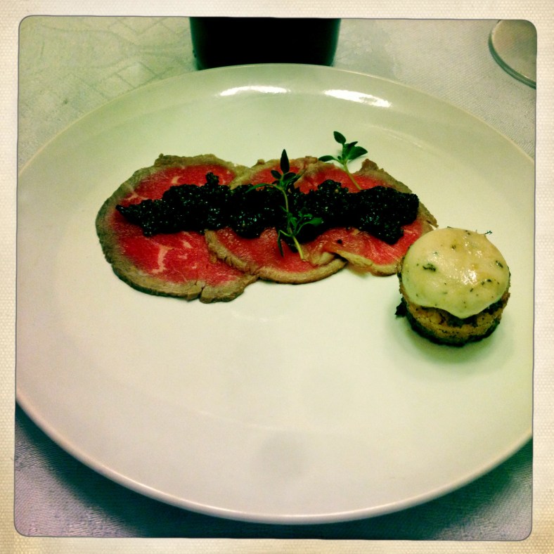 Beef Carpaccio, Cherry Mostarda, Marrow Toast