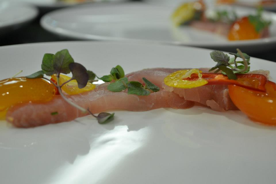 Hamachi, Kumquat Confit, Chilis, Raw Kumquat, Shiso