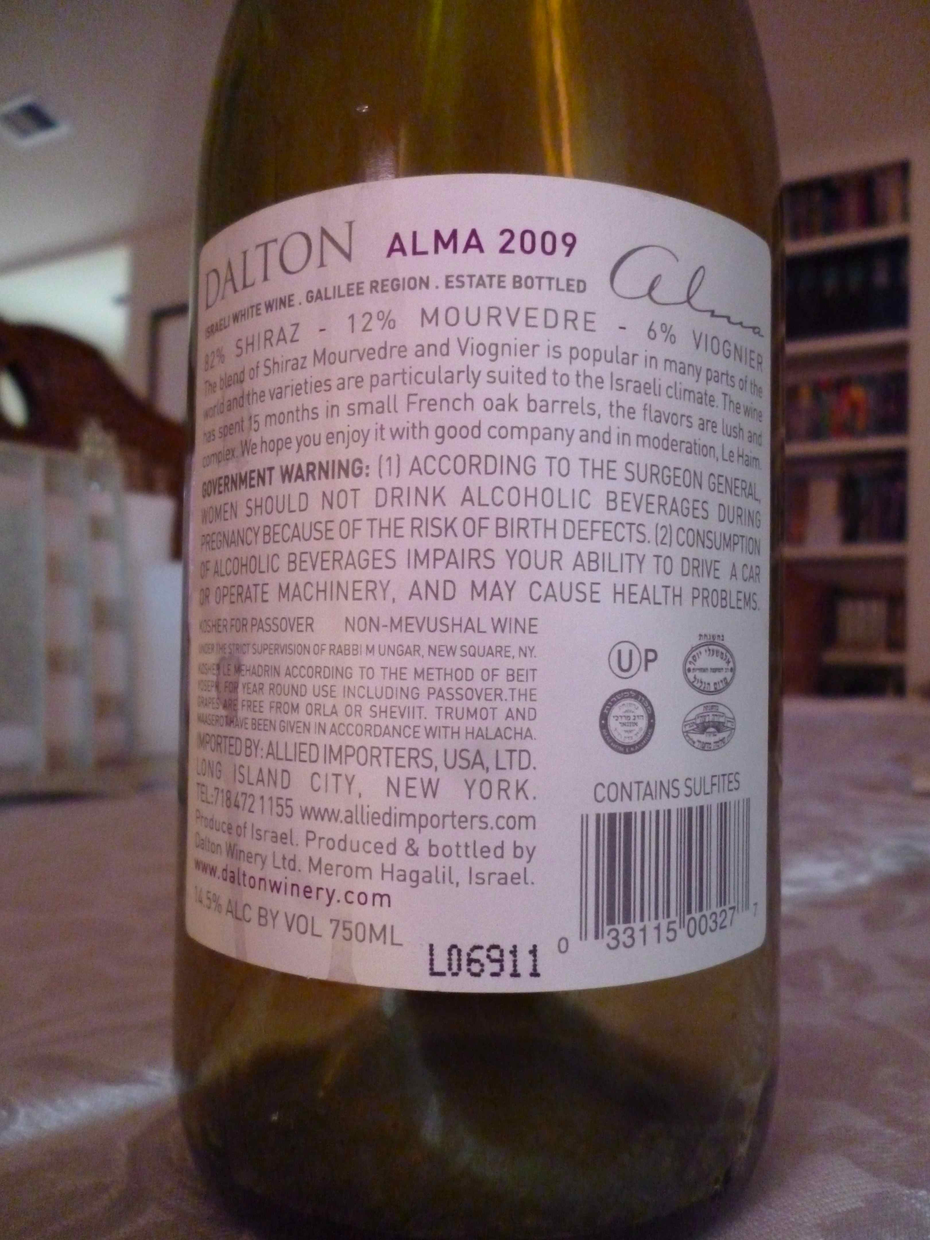 2009 Dalton Alma SMV – back label