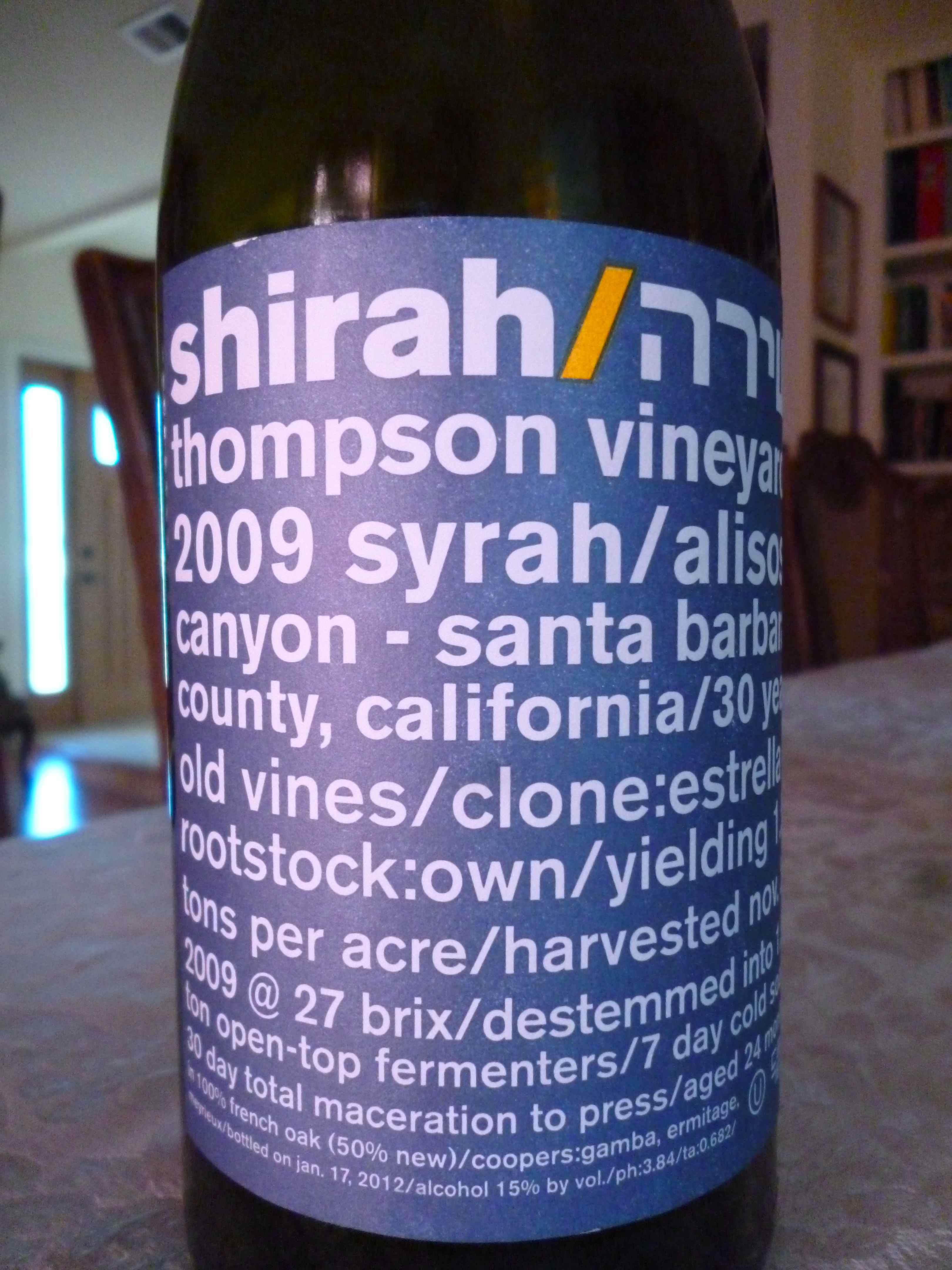 2009 Shirah Syrah, Thompson Vineyard