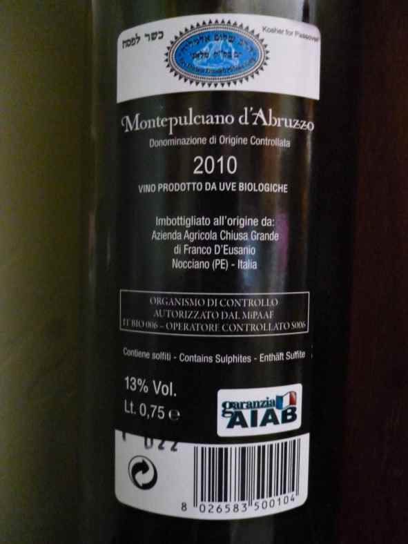 2010 Chiusa Grande Montepulciano d’Abruzzo – back label