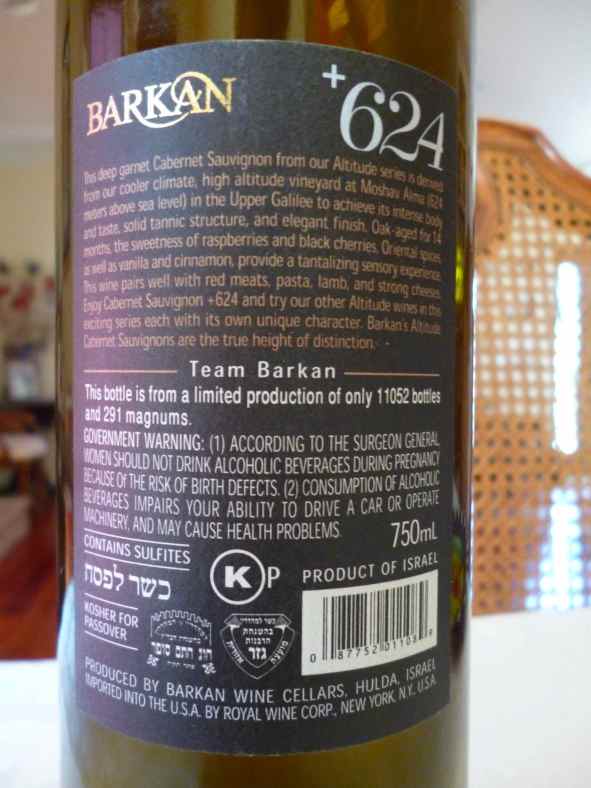 2007 Barkan Cabernet Sauvignon, +624, Altitude Series – back label
