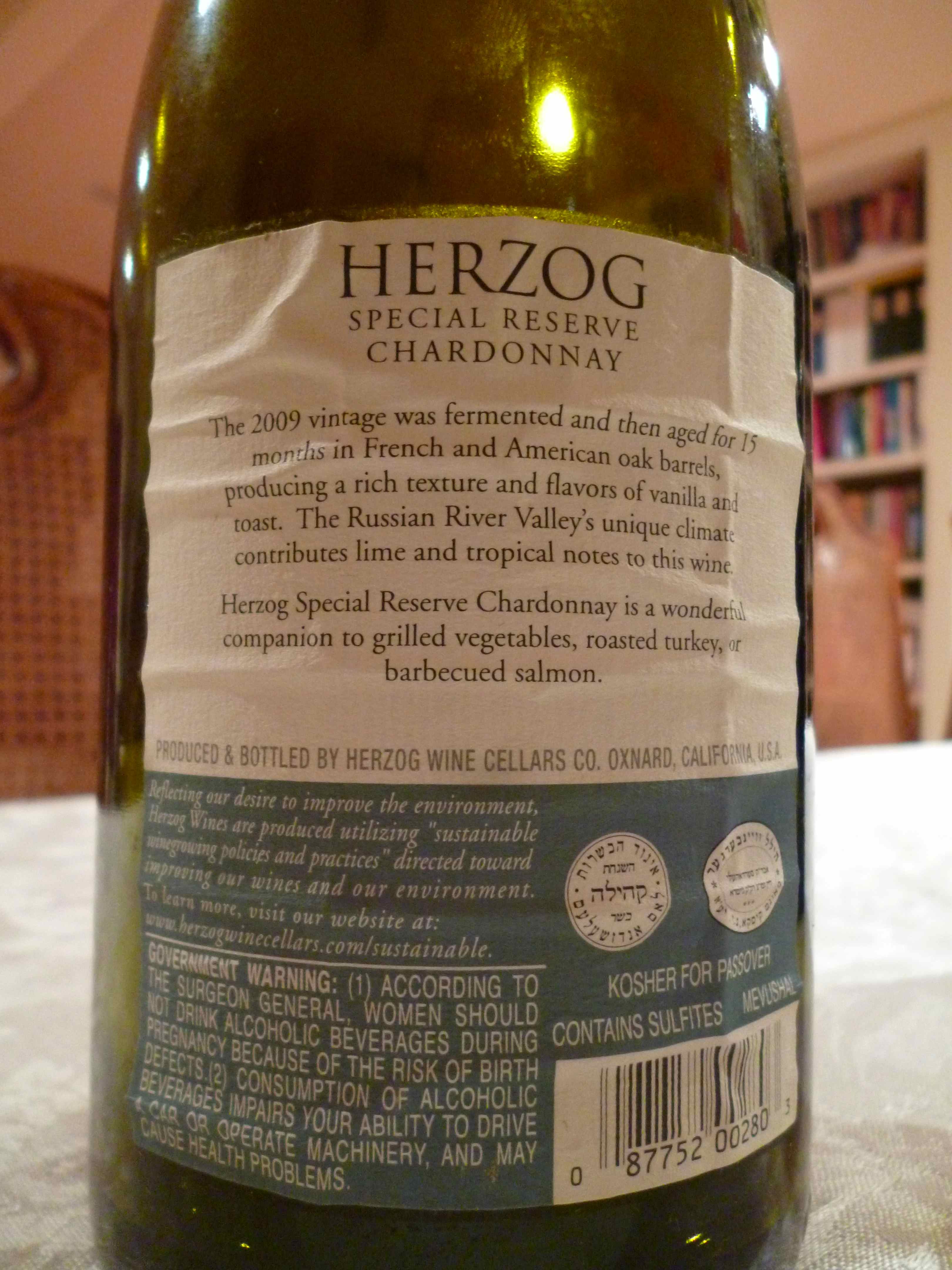 2009 Herzog Chardonnay, Special Reserve, Russian River – back label