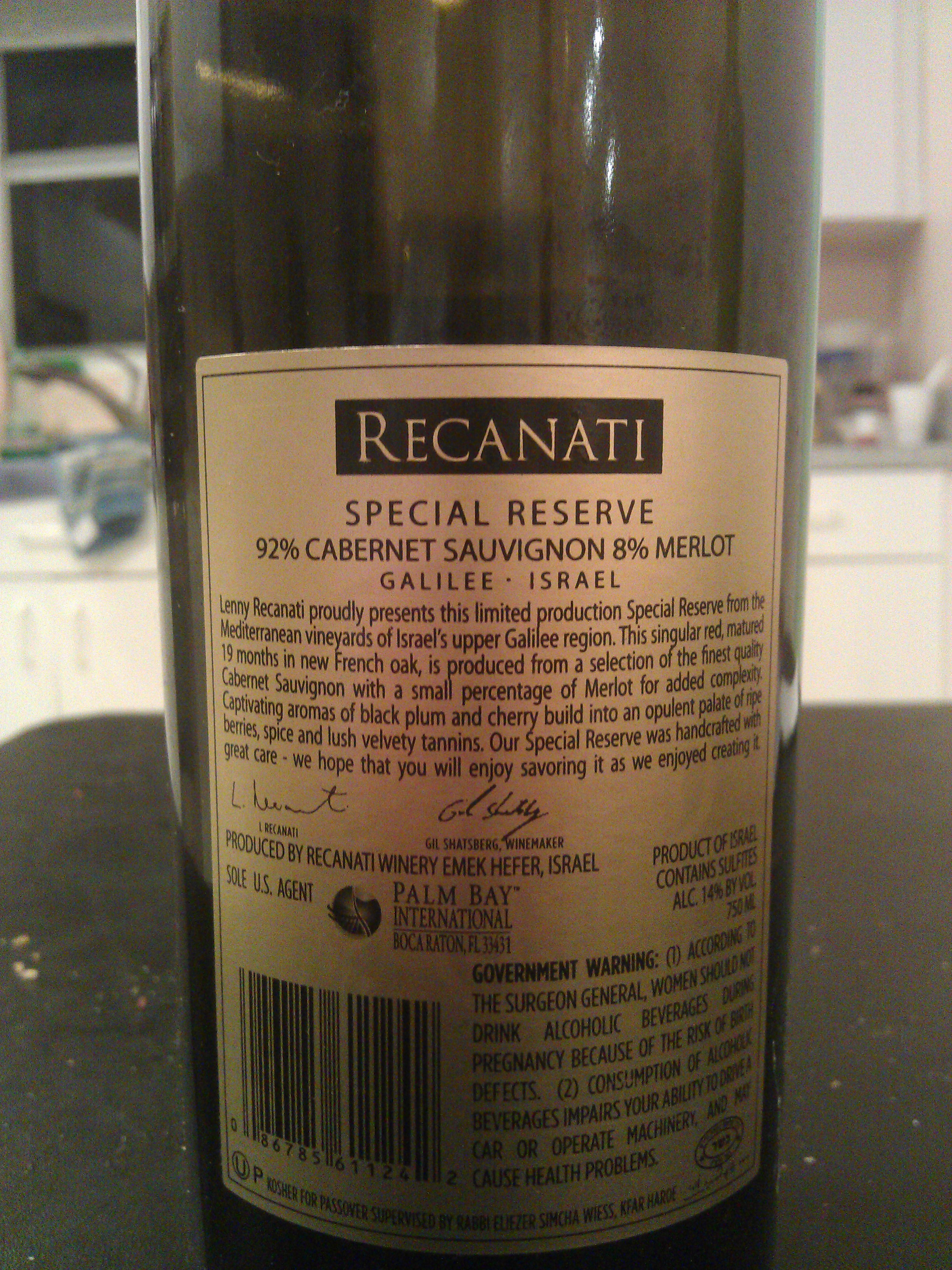 2006 Recanati Special Reserve – back label