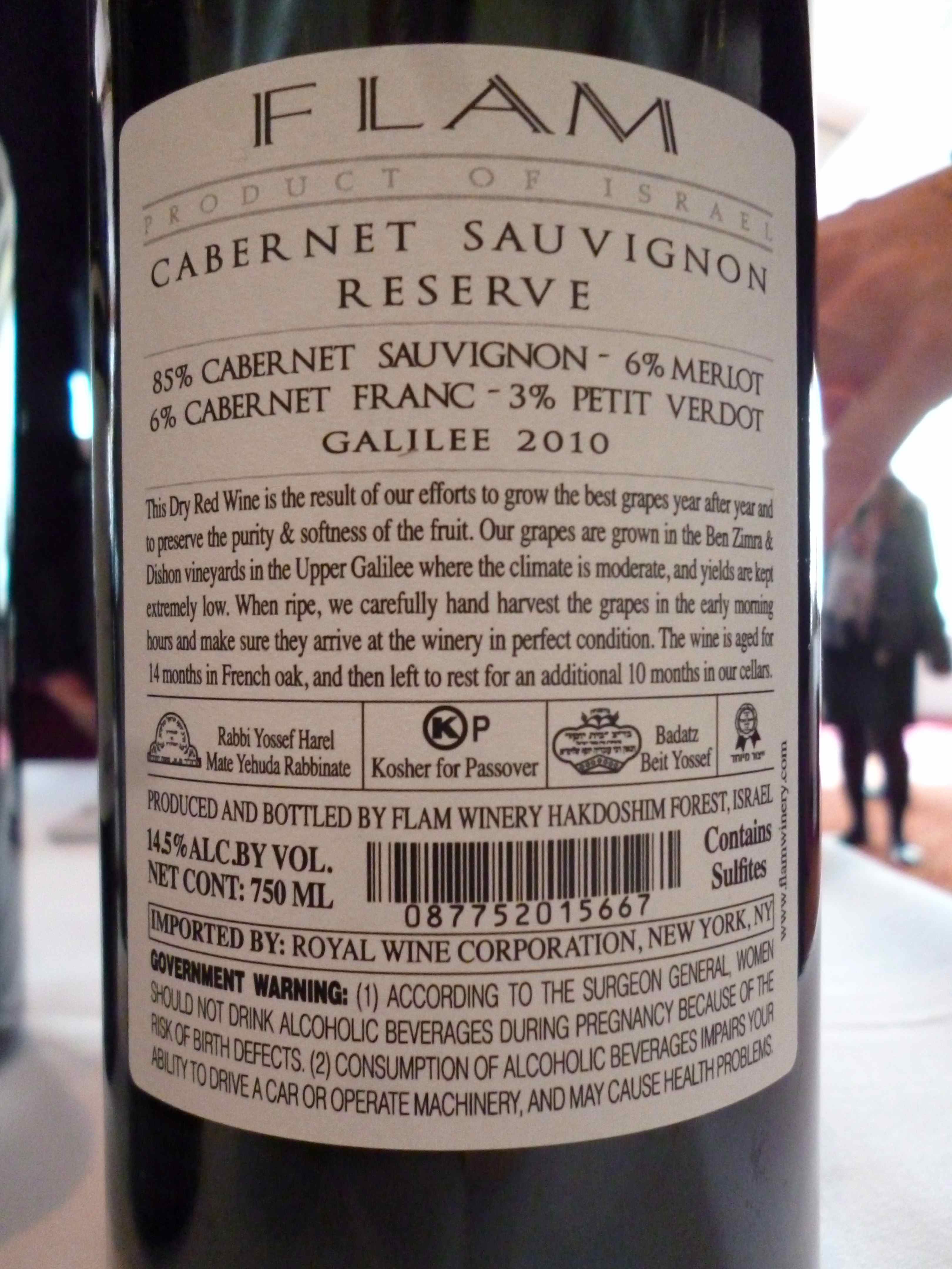 2010 Flam Cabernet Sauvignon, Reserve – back label