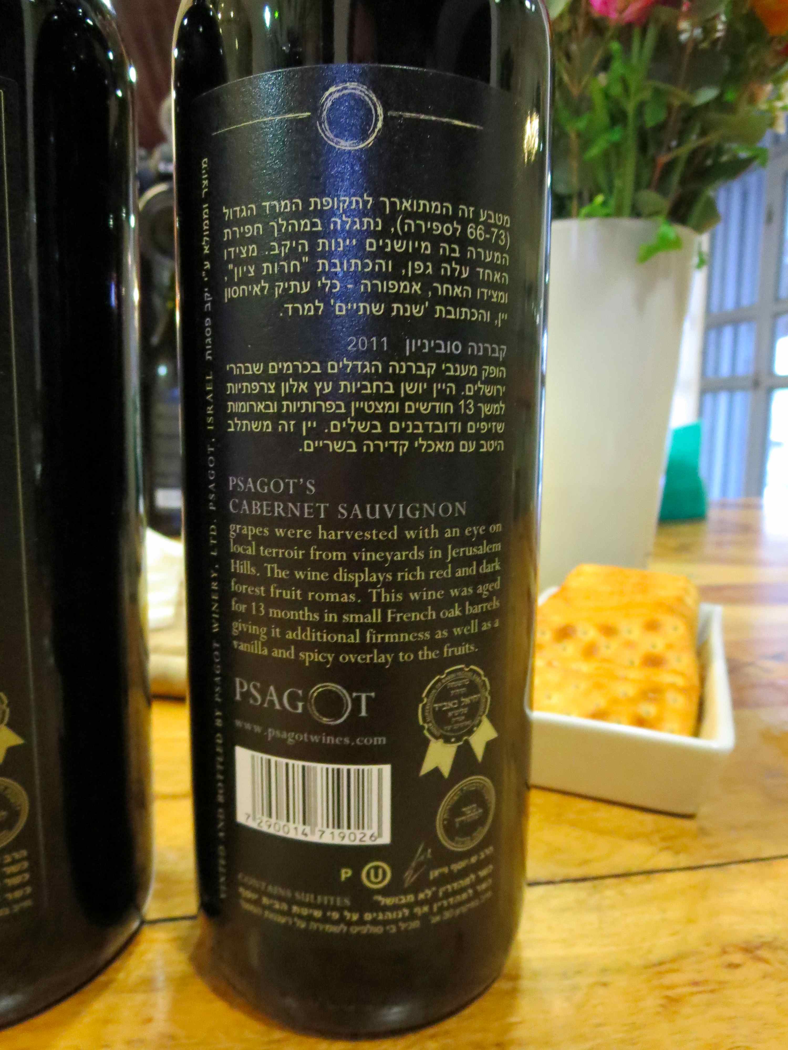 2011 Psagot Cabernet Sauvignon – back label