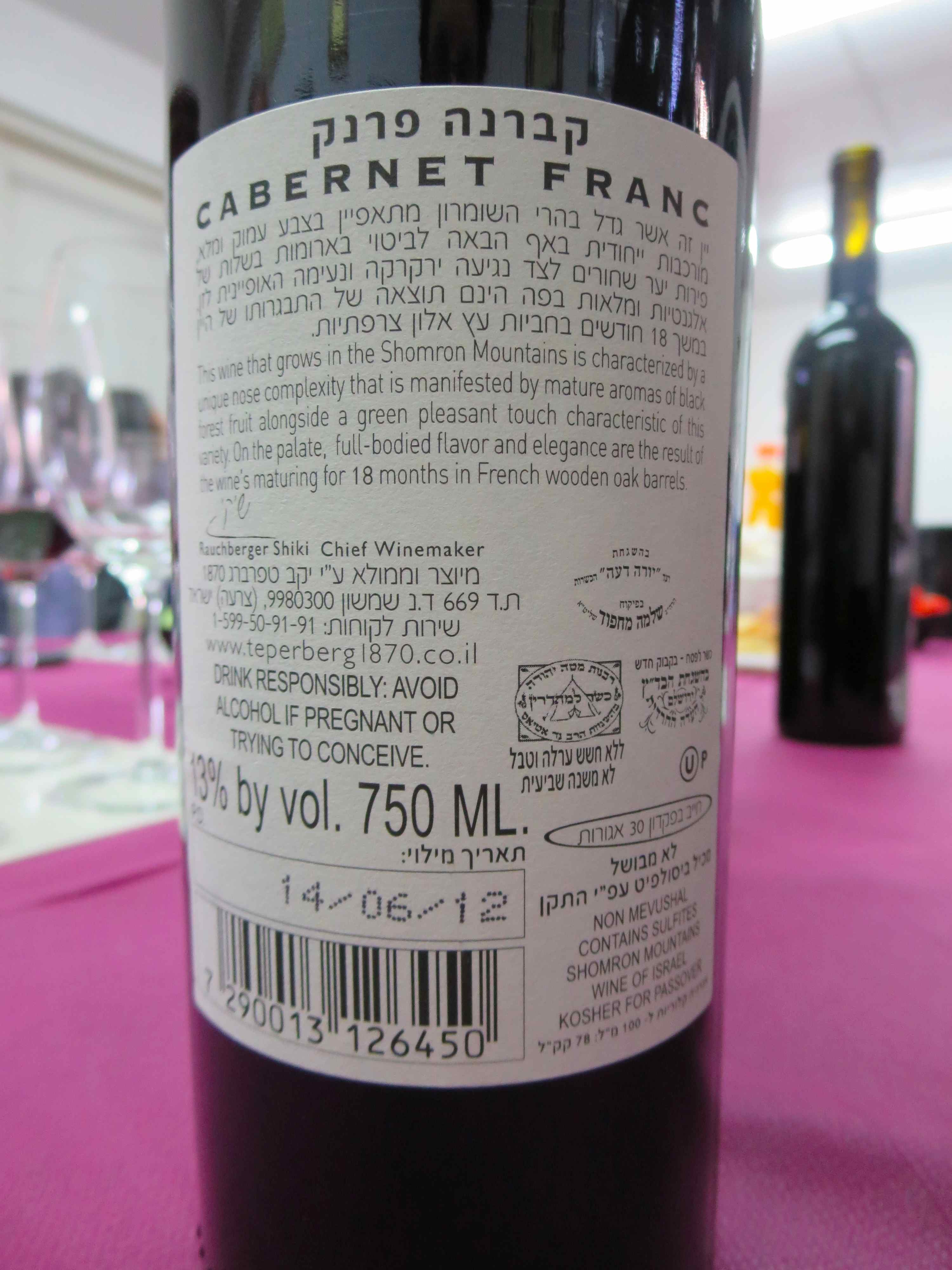 2010 Teperberg Cabernet Franc, Limited Edition – back label