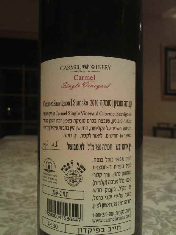 2010 Carmel Cabernet Sauvignon, Sumaka Vineyard, Single Vineyard – back label