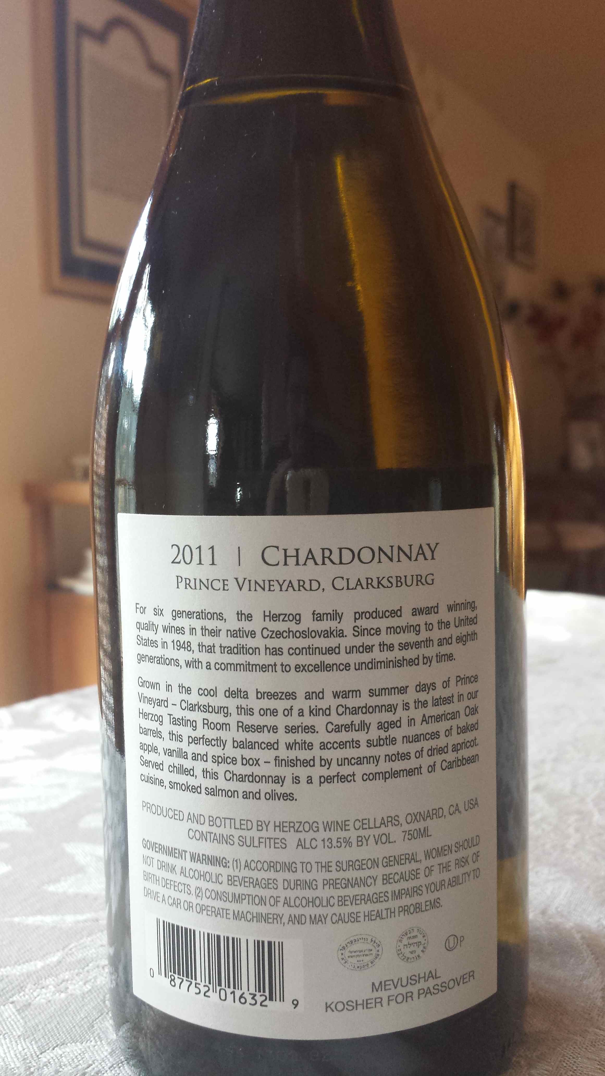 2011 Herzog Chardonnay, Prince Vineyard – back label