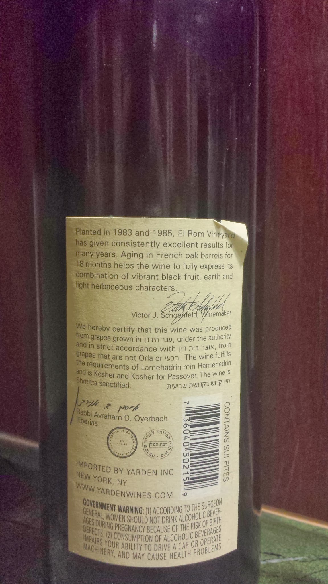 2001 Yarden El Rom Cabernet Sauvignon – back label