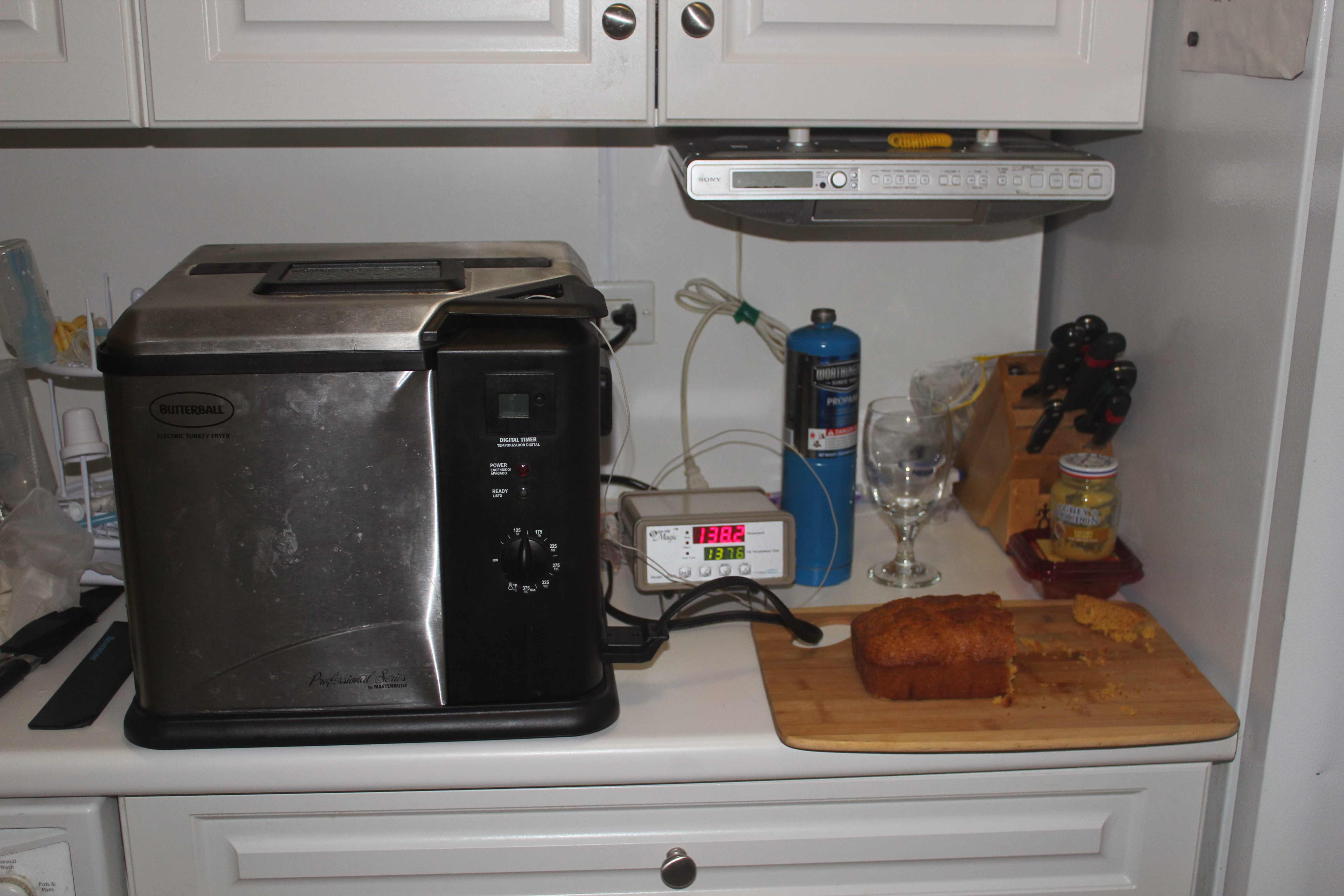 Anyway, getting back to the evening, I arrived with bottle in hand, and YC was deep in thought in front of his sous vide machine, in the kitchen where he was also tending to the; Home Cured Bresaola, 80-hour Sous Vide, Dry Aged Prime Short Ribs, Rustic Cornbread, Beer Braised “Bacon” Baked Beans, and Red Cabbage Slaw! He was not working on all of them at the same time, much of that work was done hours ago, and instead at this point in time, he was intently gazing into the water bath and figuring out when to remove the ribs and start the final process of finishing/caramelizing the ribs.
