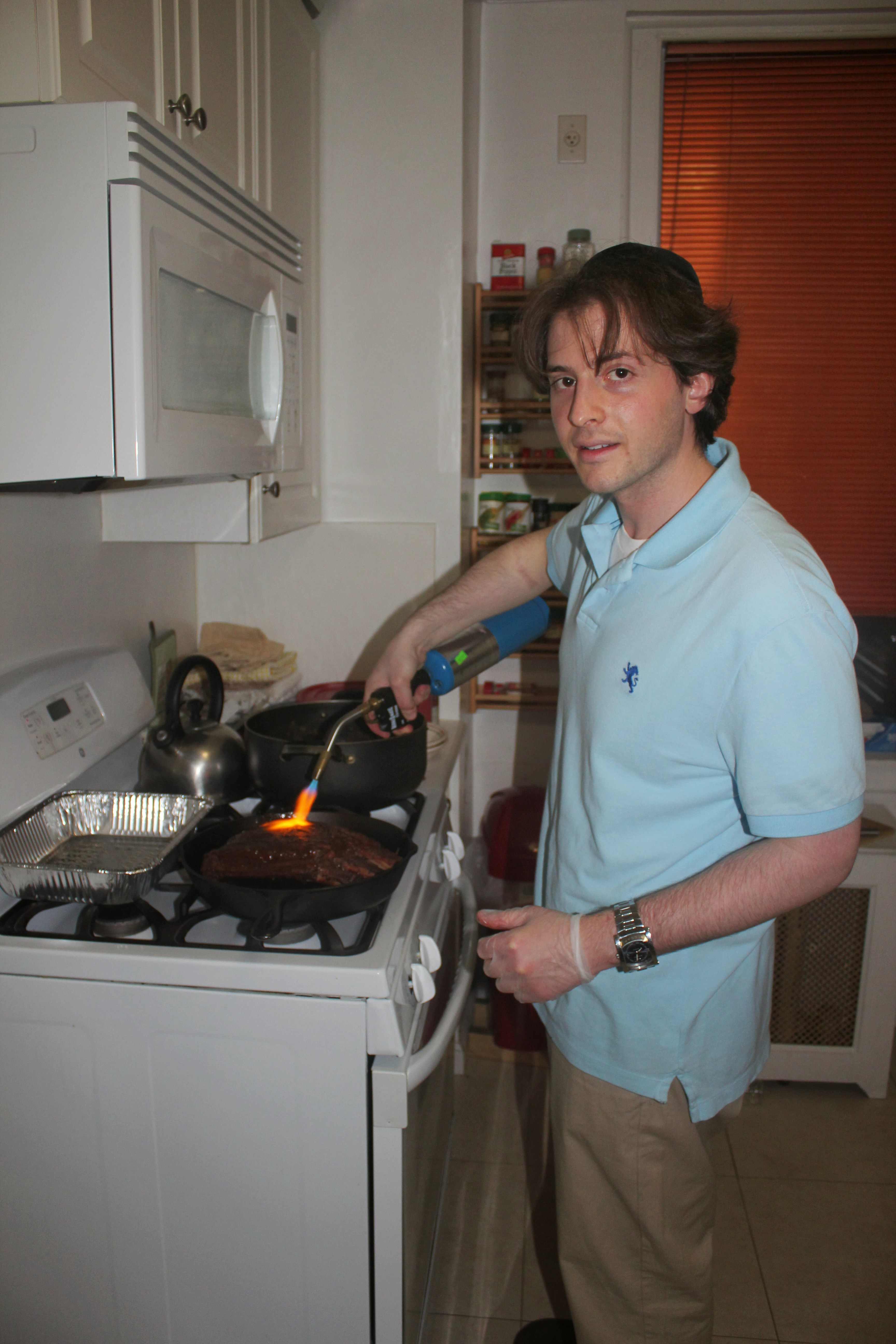 The meal was just delicious, the sous vide ribs that were hand torched and seared were off the charts, in size, flavor, and quality! This was some truly good grub! The theme was meat in picnic basket style, with baked beans, purple slaw, and rustic corn bread – the only thing missing was the checkered linen and straw basket. The meal was lovely, the meat was rich and soft, with a bite to the texture, but with perfectly pull-off the bone texture. The rest of the sides were up to task and overall the dish came together quite nicely indeed. The Bresaola was off the charts and disappeared before anyone could say boo! I was not there, but I have pictures from other folks, who watched YC go at the Dino Ribs with a flamethrower and a smoking cast iron pan! I hope he also used this as a release point for whatever aggravations he may have had that day! The outcome though was fantastic! The meat was caramelized to a point of crunch without tasting or feeling over cooked – BRAVO!