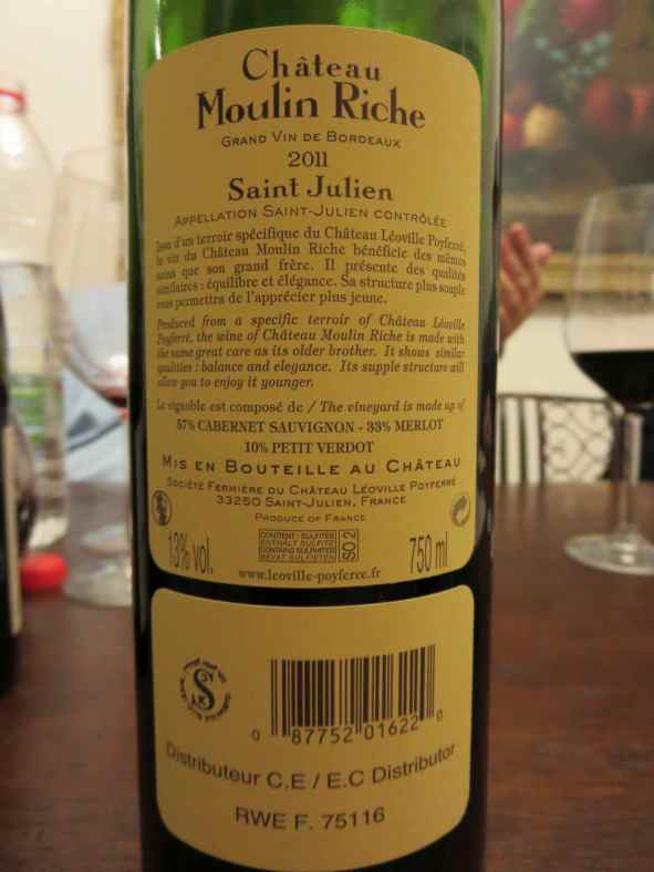 2011 Chateau Moulin Riche, Saint Julein – back label