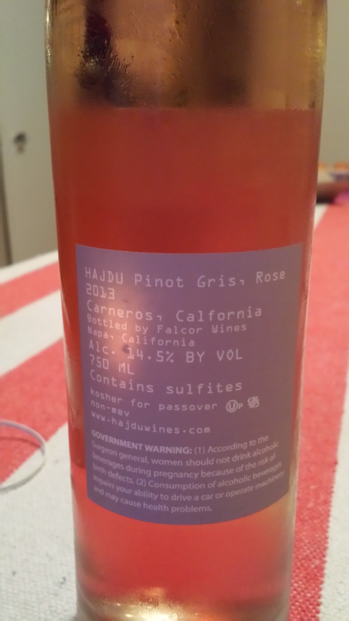 2013 Hajdu Pinot Gris, Rose – back label